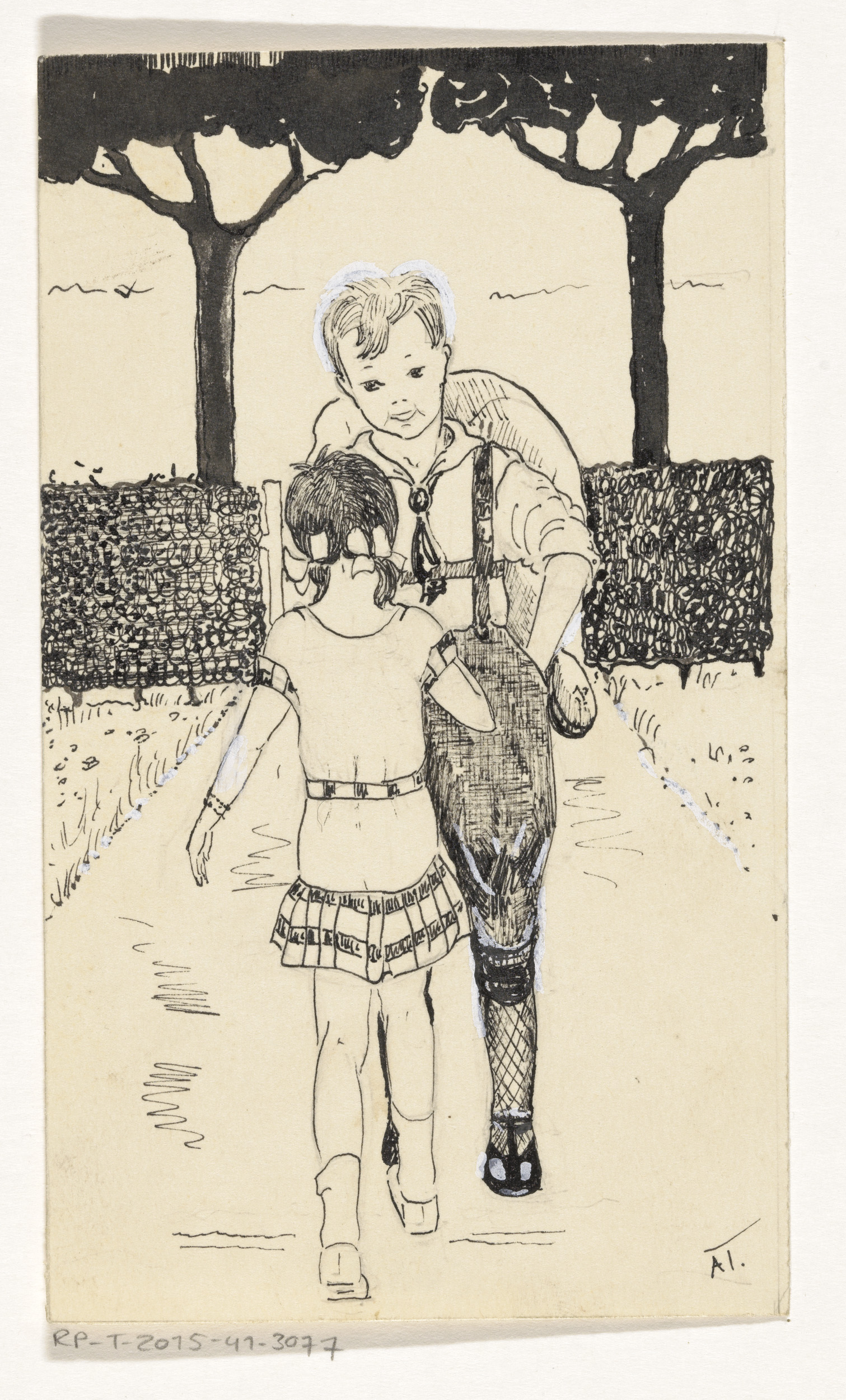 Jongen en meisje op een tuinpad
