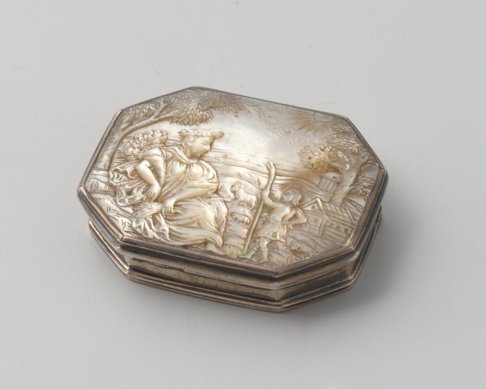 Tableautegel in tinglazuur, voorstellende feston, to...