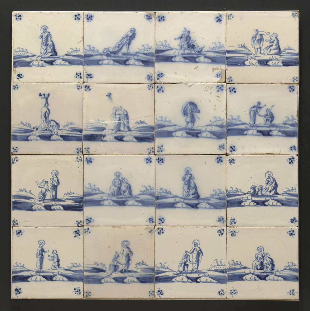 Tegelveld van keramiek, tinglazuur, voorstellende ee...