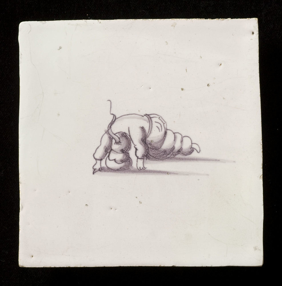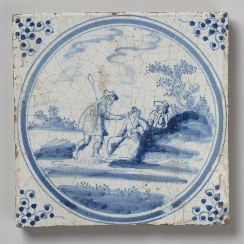 tegel van aardewerk met tinglazuur, voorstellende: p...