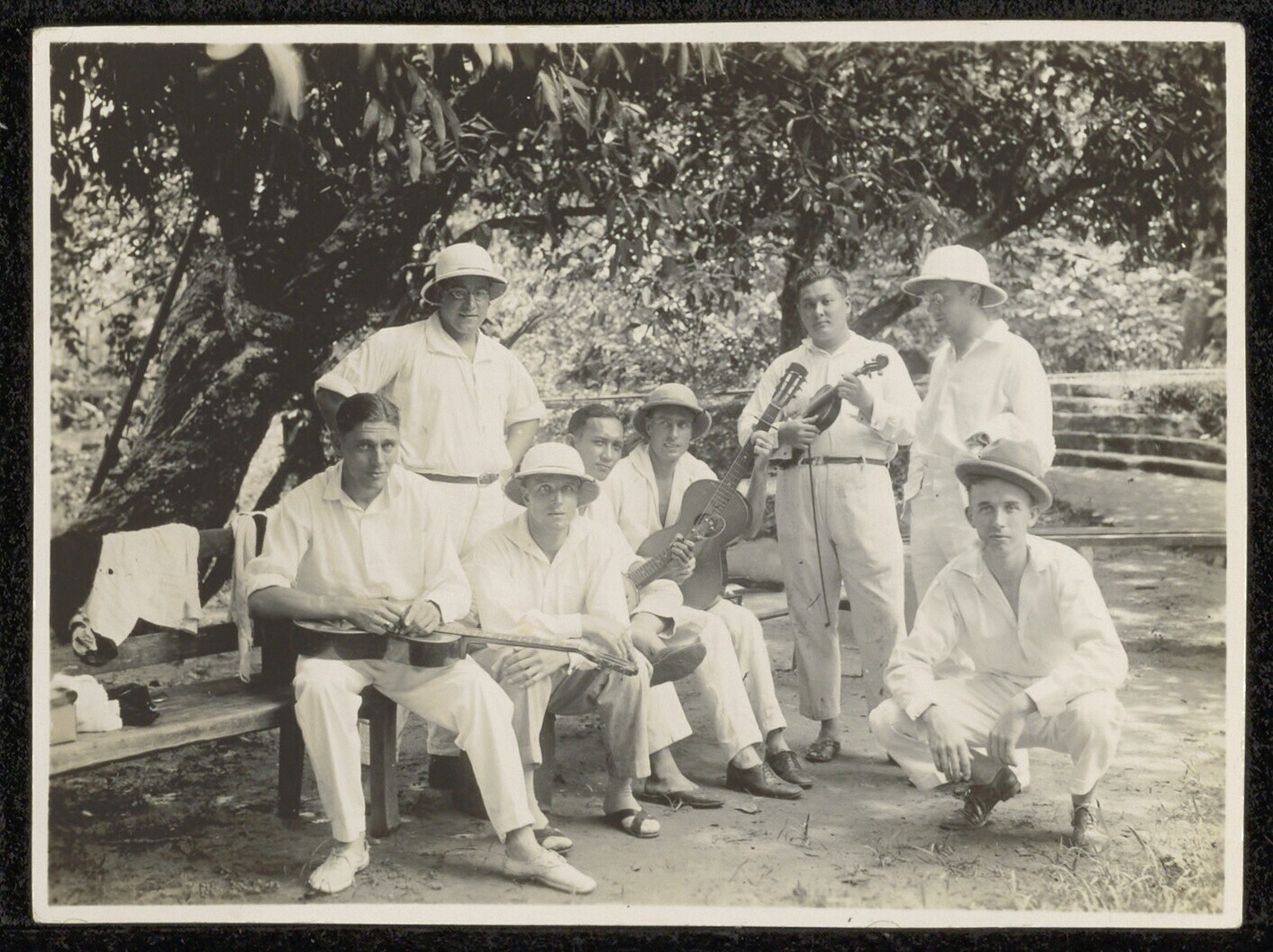 Portret van mannen met muziekinstrumenten