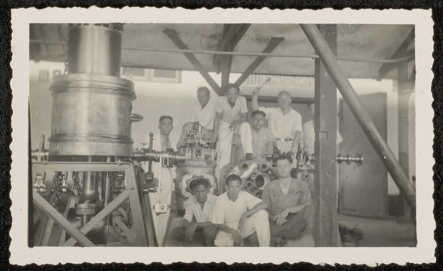 Portret van een groep mannen bij machines