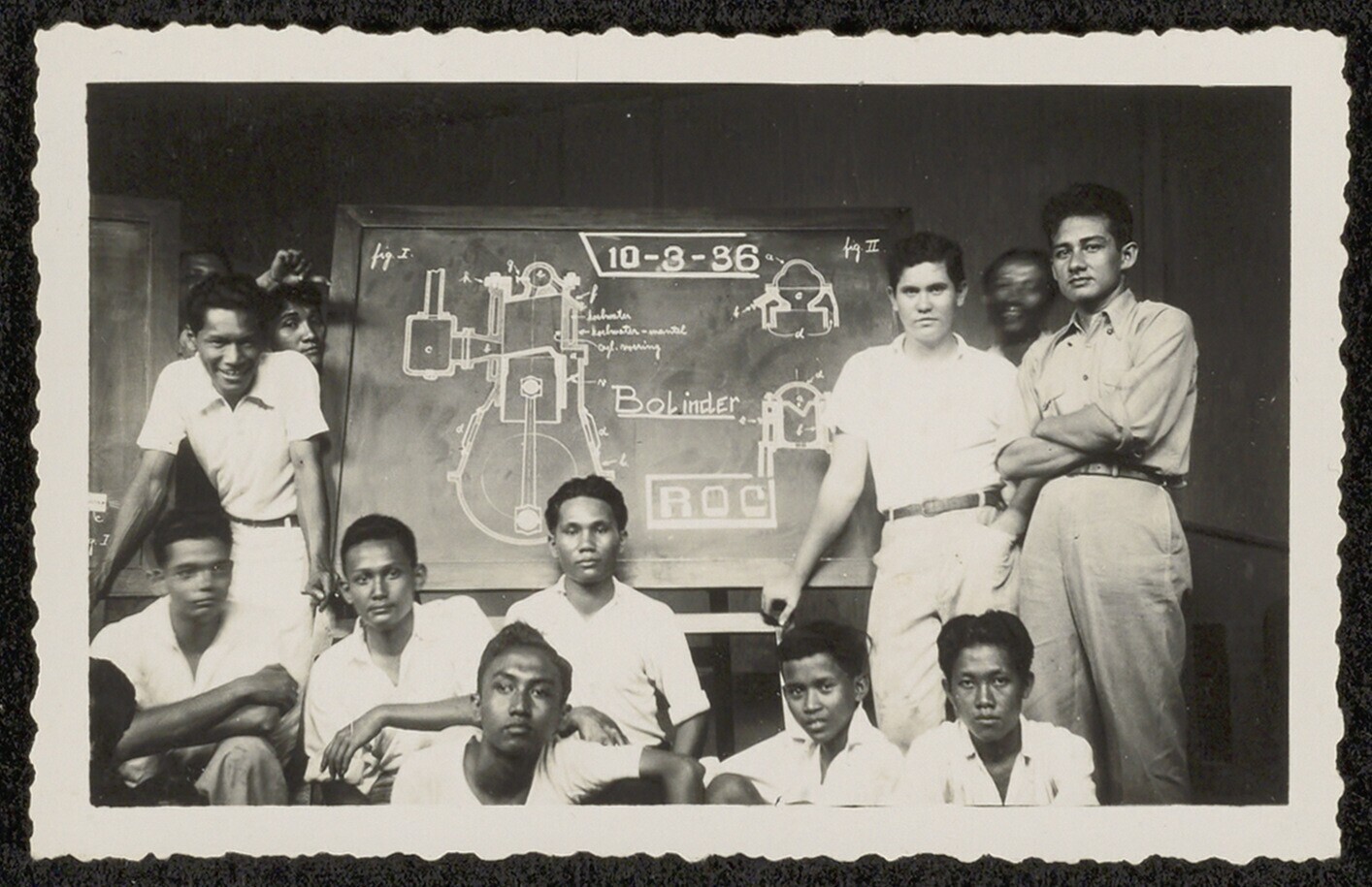 Portret van een groep mannen voor het schoolbord