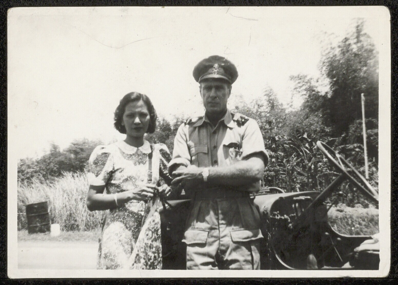 Portret van een man en een vrouw in een jeep