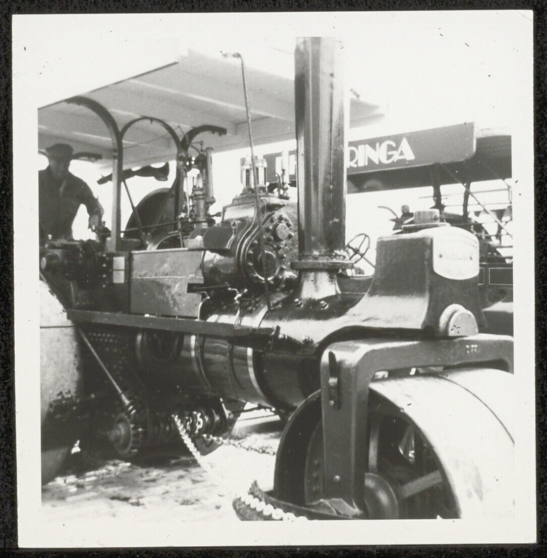 Walsmachine met man en daarnaast een auto
