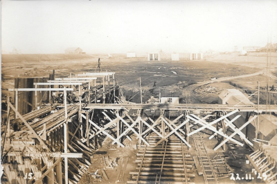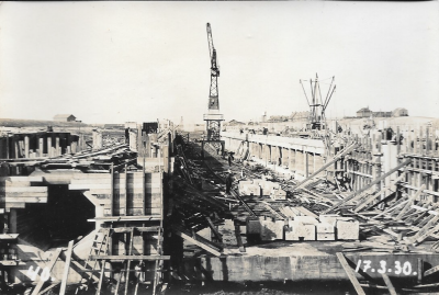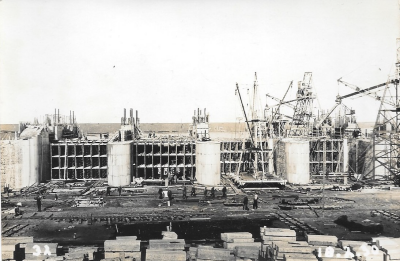 Bouw van de Afsluitdijk. Eén van de sluizencomplexen...