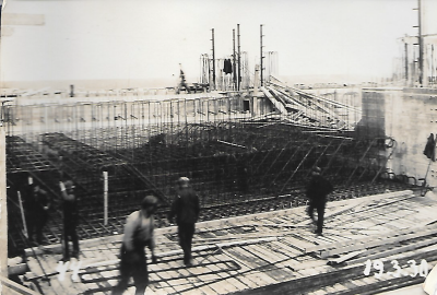 Bouw van de Afsluitdijk. Het maken van zinkstukken