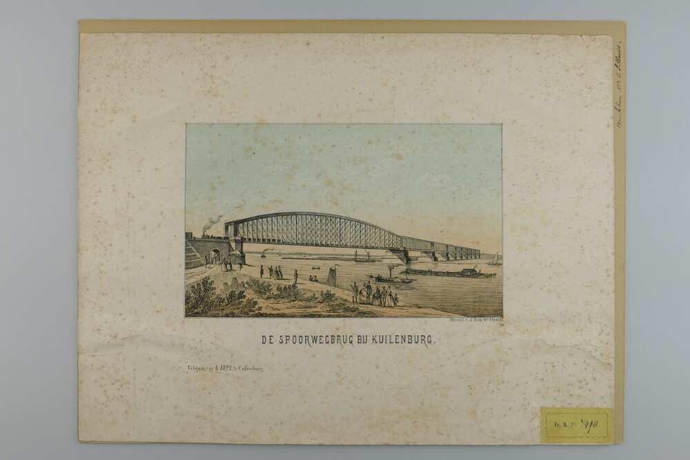 Kleurenlitho voorstellende de spoorwegbrug te Kuilen...