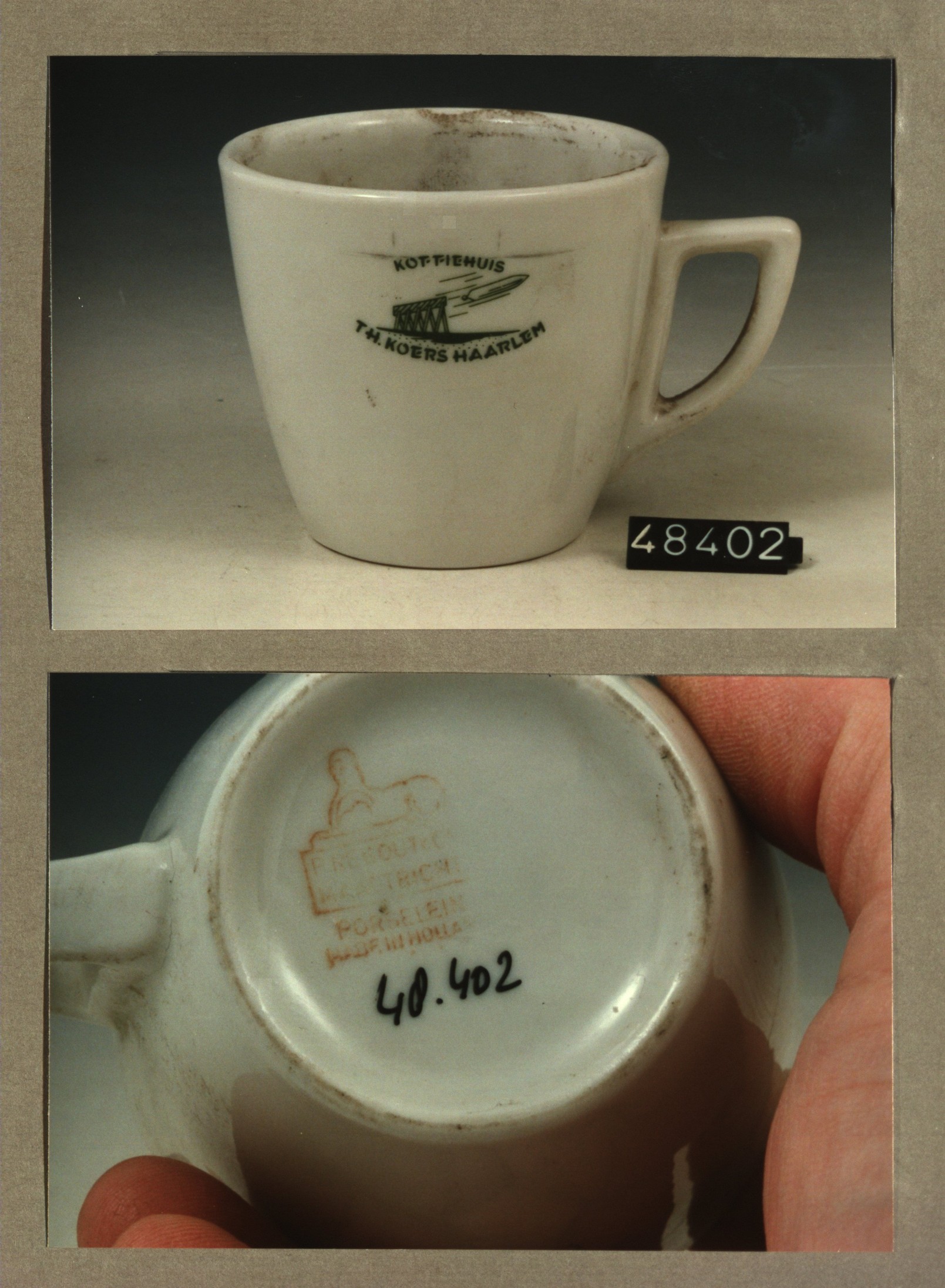 Kop met opschrift, model P2 met decor Koffiehuis Koe...