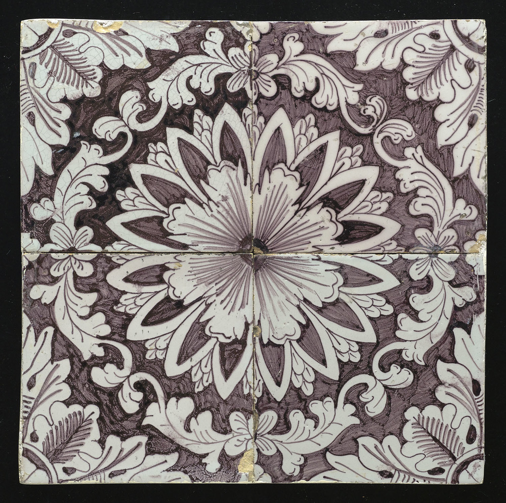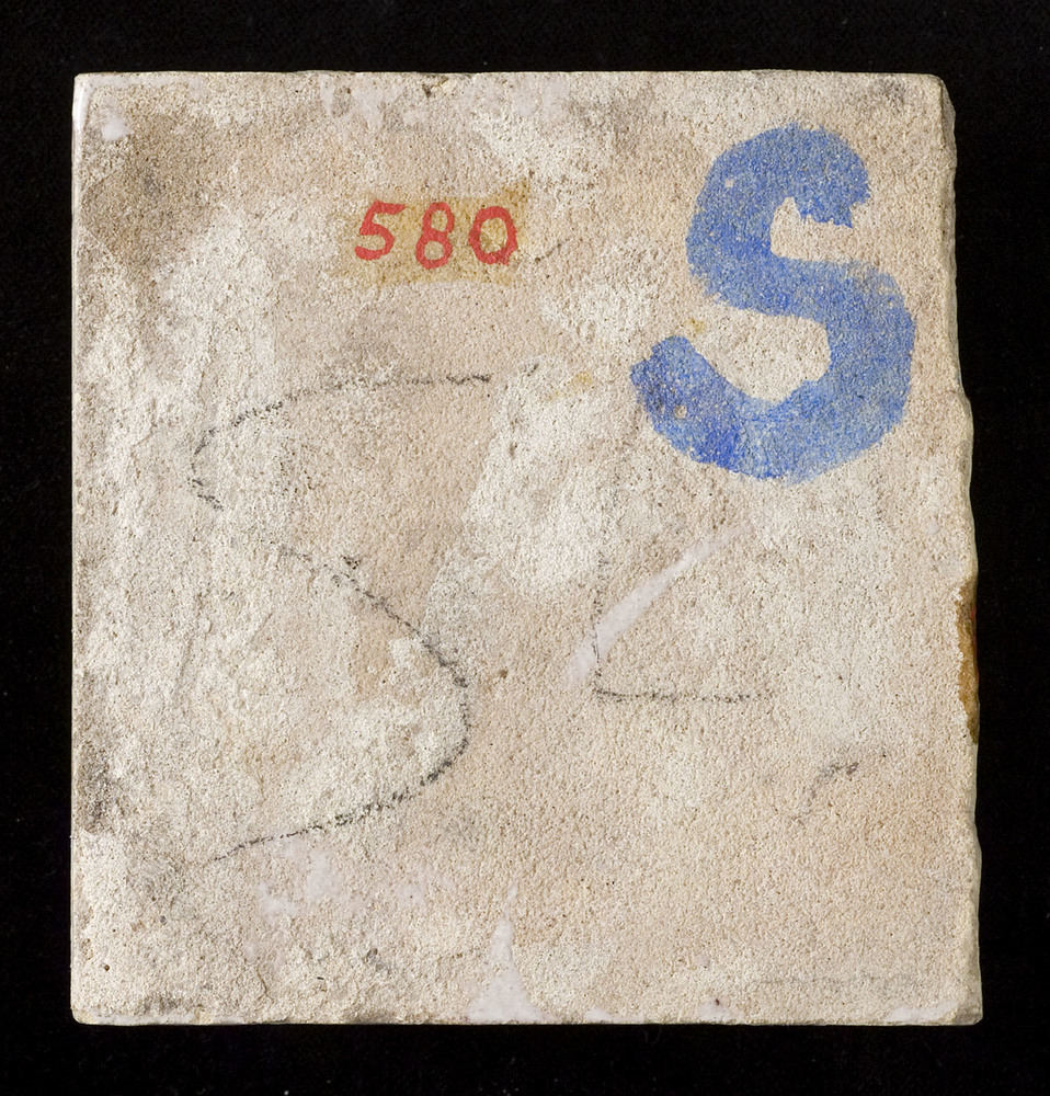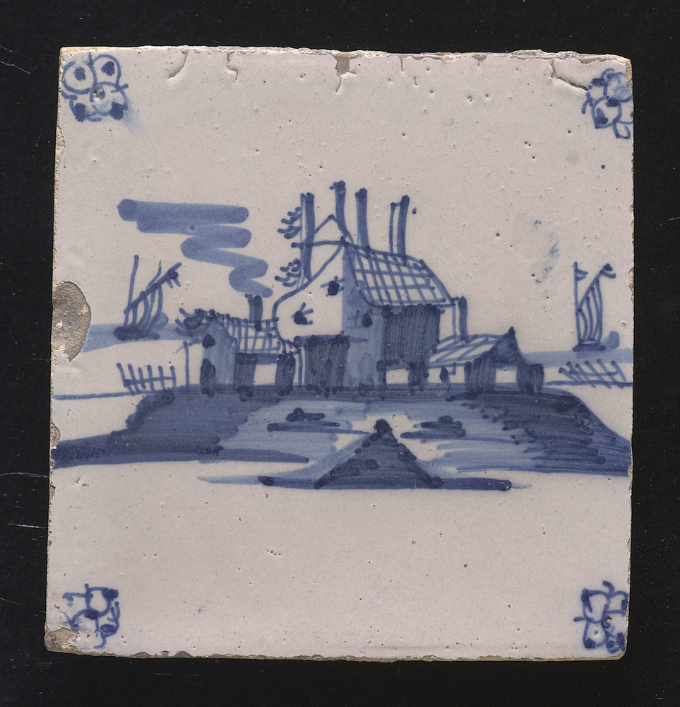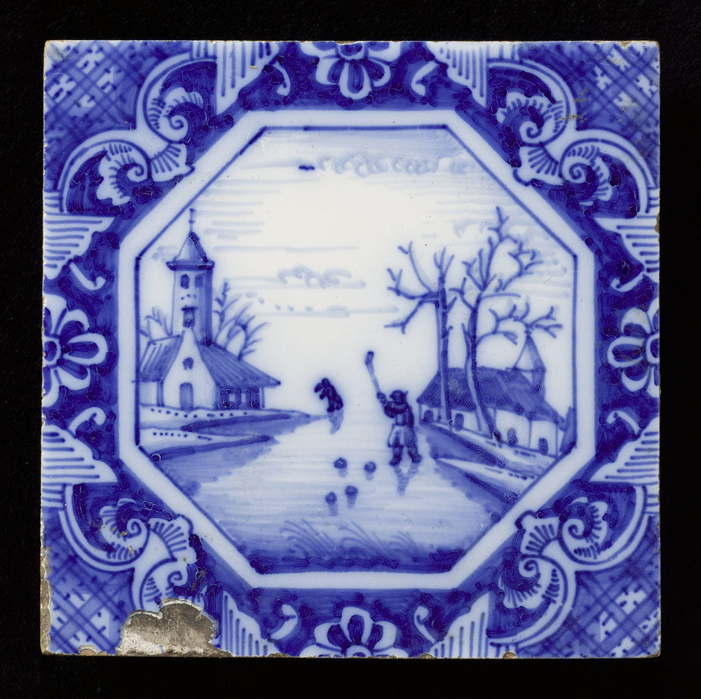 tegel van keramiek met tinglazuur, voorstellende: ru...