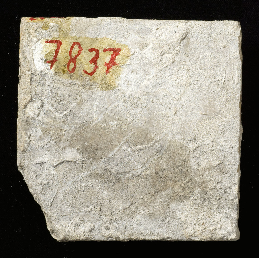 Tegel is tinglazuur, voorstellende vis ca. 1750-1800