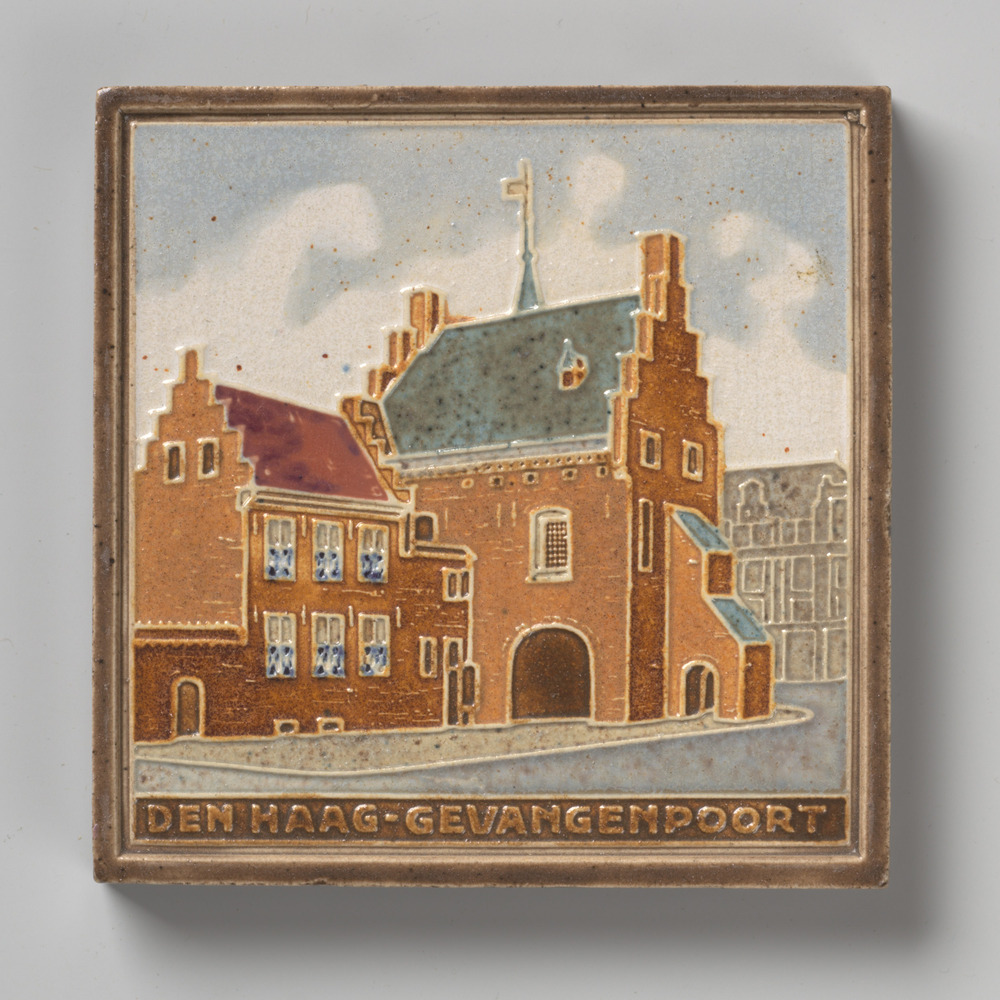 Tegel in cloisonné-techniek, met voorstelling: Den H...