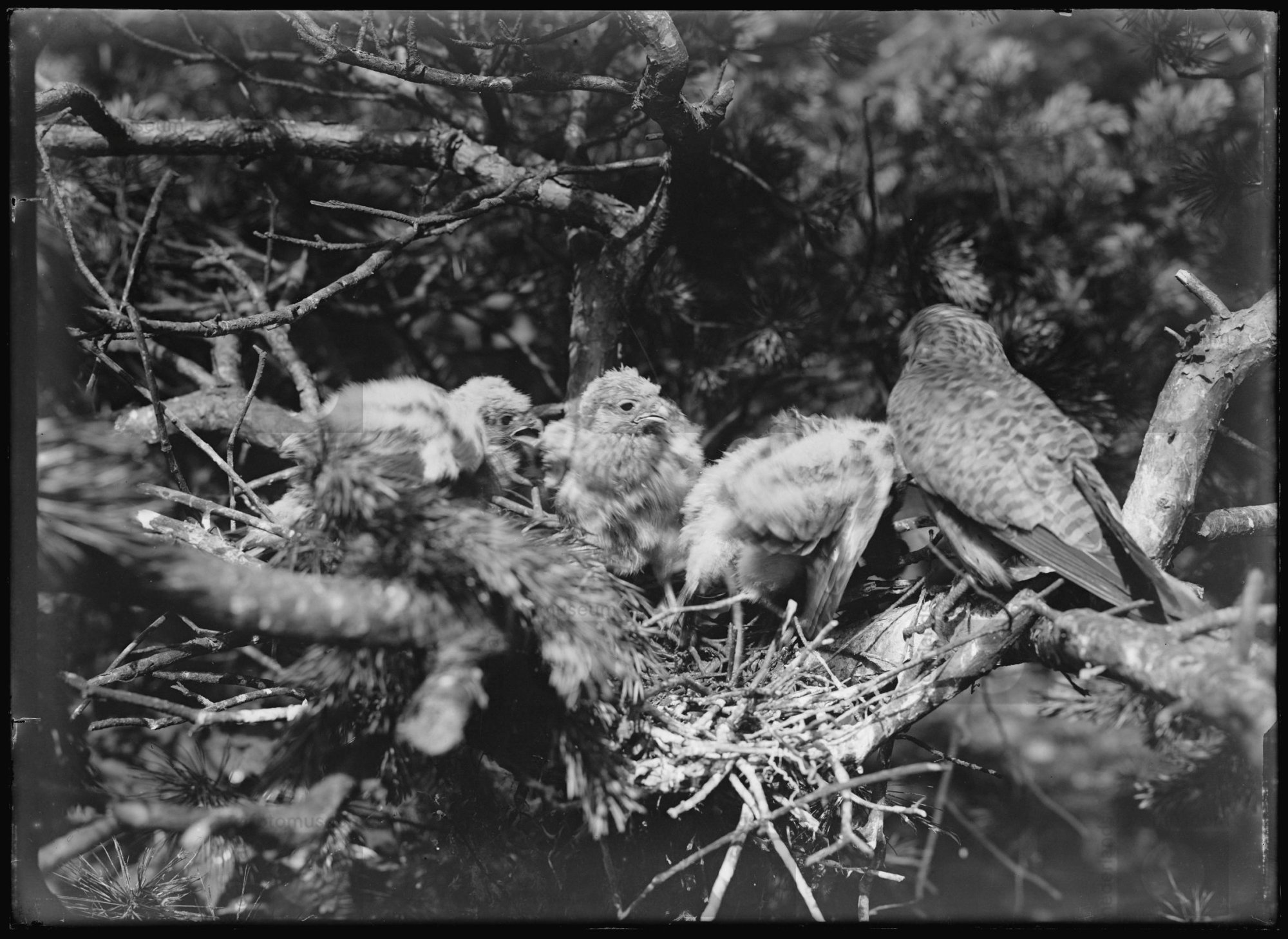 Torenvalk bij zijn nest met jongen, Gietelo (1910)