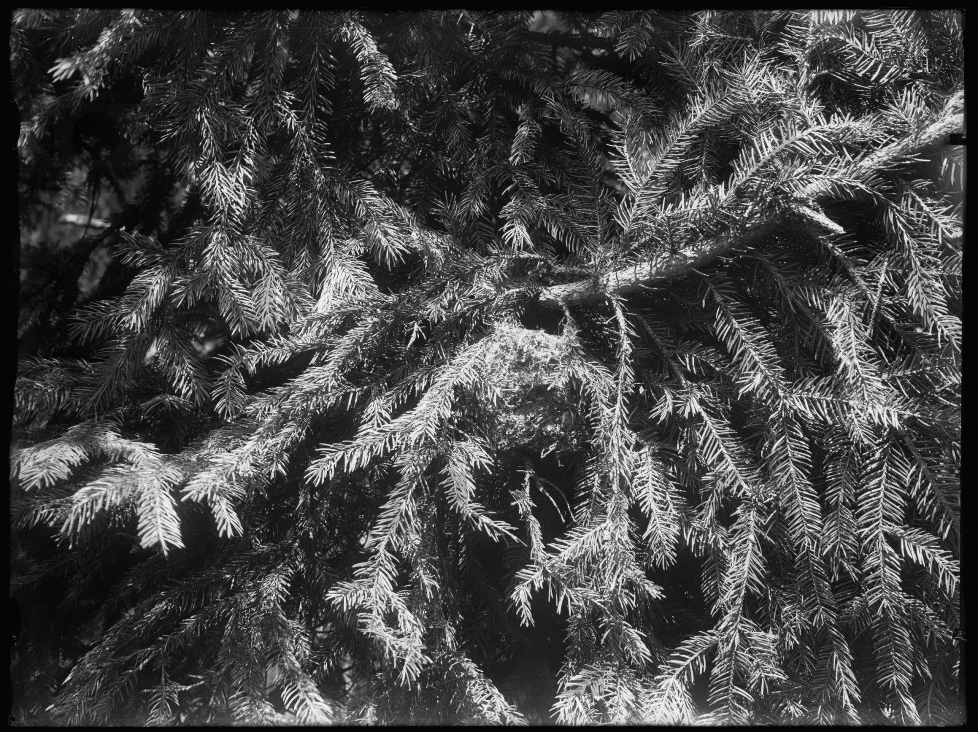 Nest van Goudhaan in spar, Ginkelse Bossen, Ede (1908)