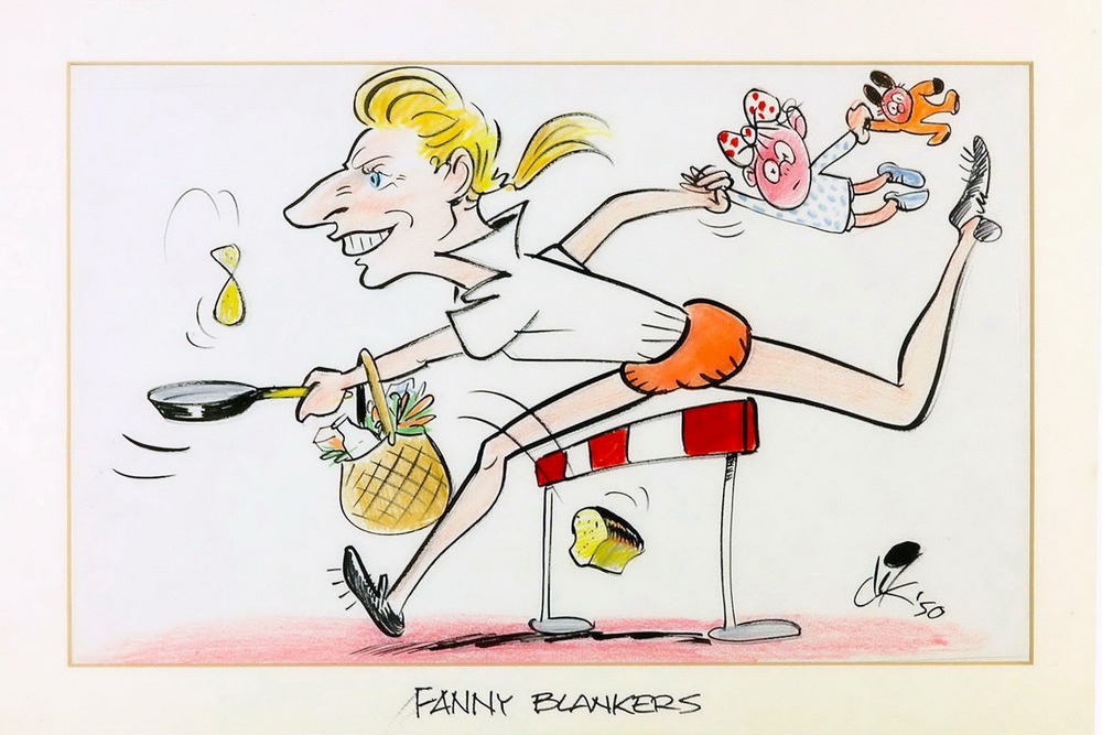 Karikatuur van Fanny Blankers, Dik Bruynesteyn, 1950
