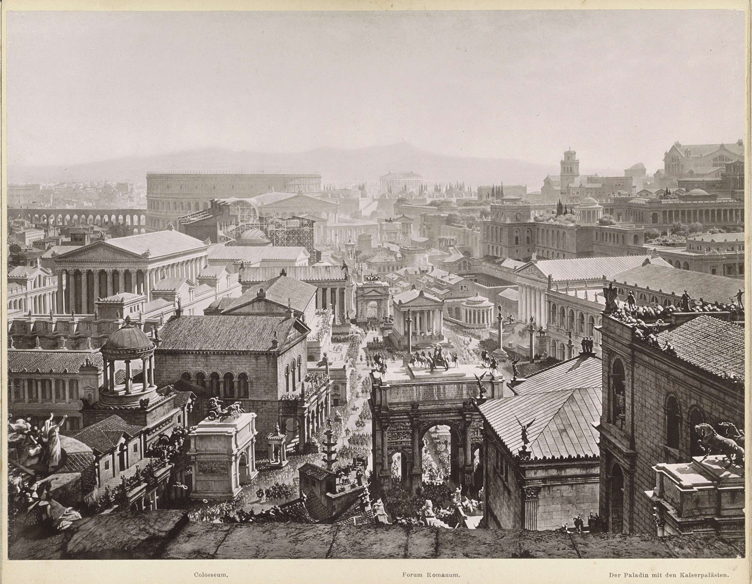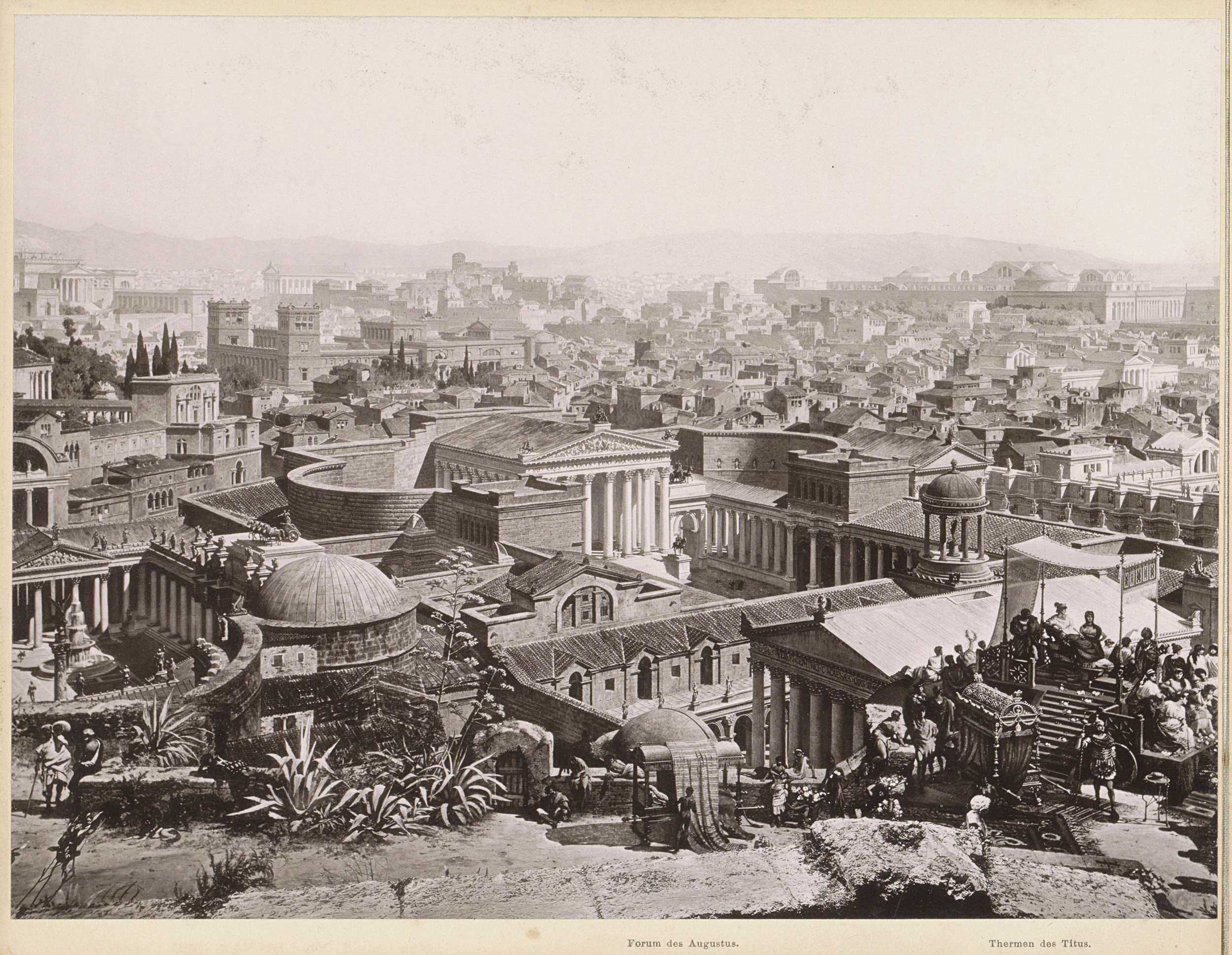 Gezicht op het oude Rome: het Forum van Augustus en ...