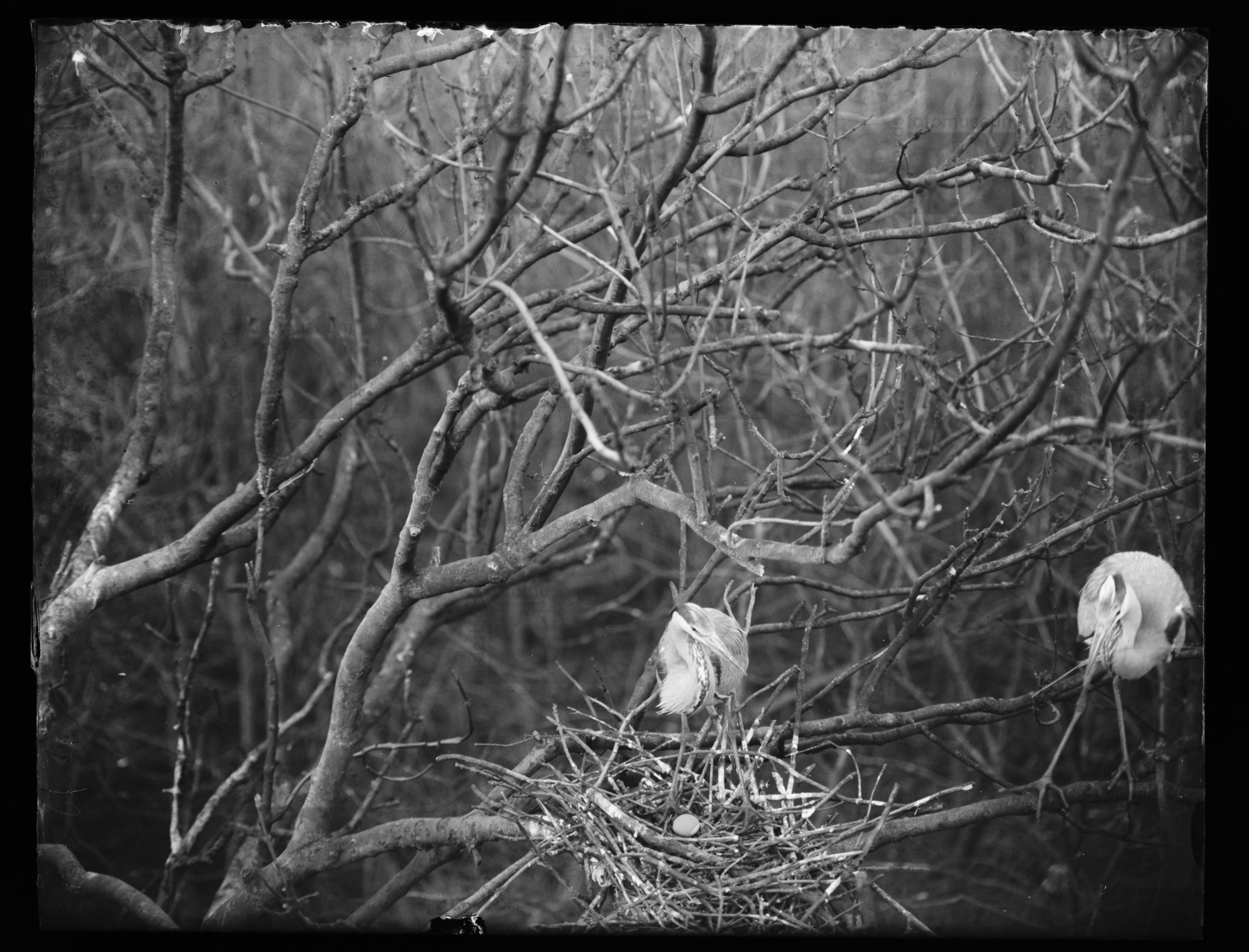 Blauwe reiger op nest, Sloten, (1931)
