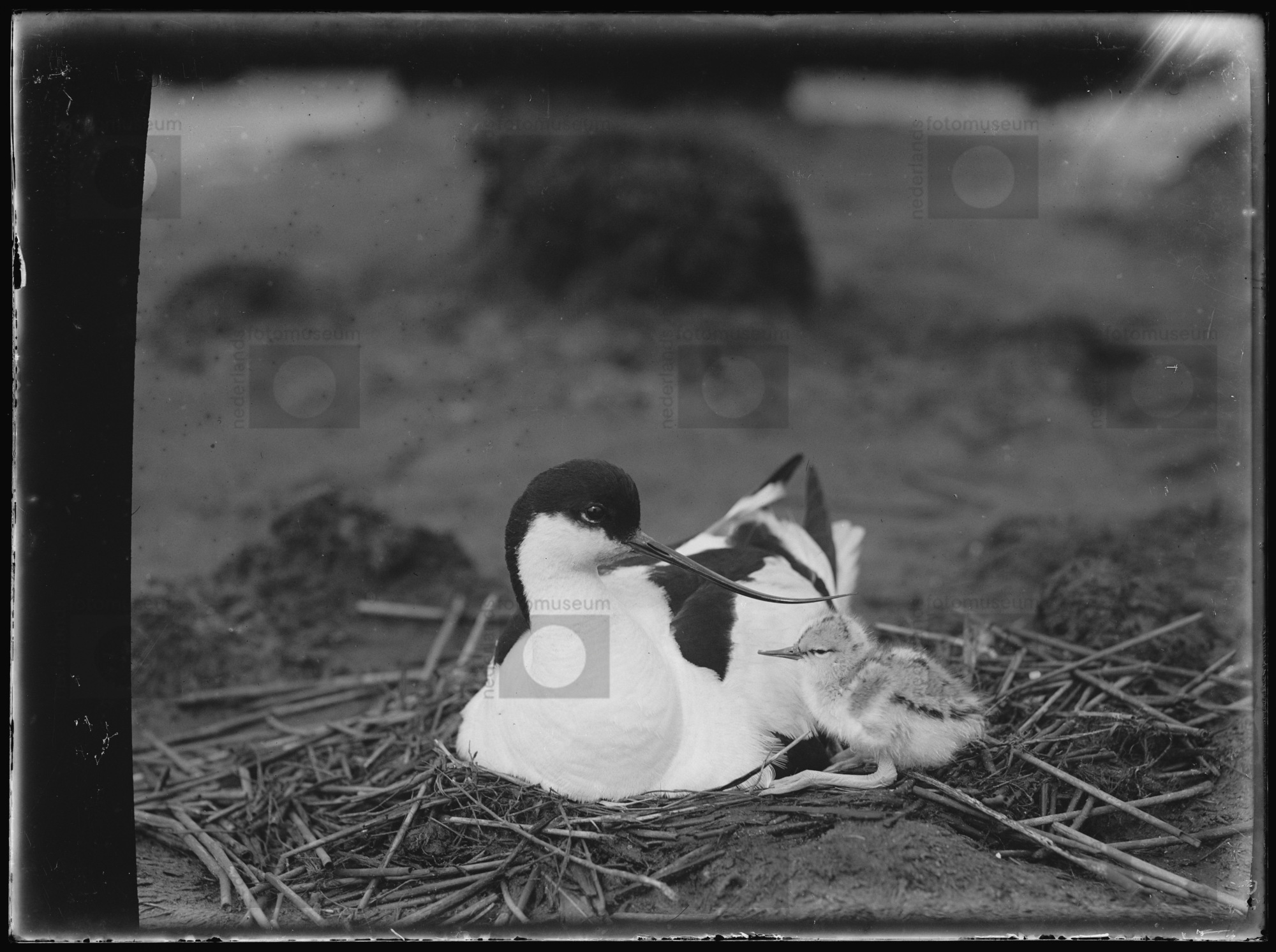 Velduil op nest met jongen (1925-1940)