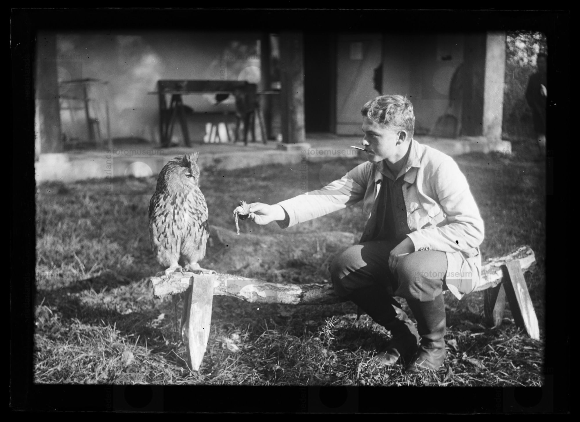 Onbekende student voert Oehoe in gevangenschap in vo...