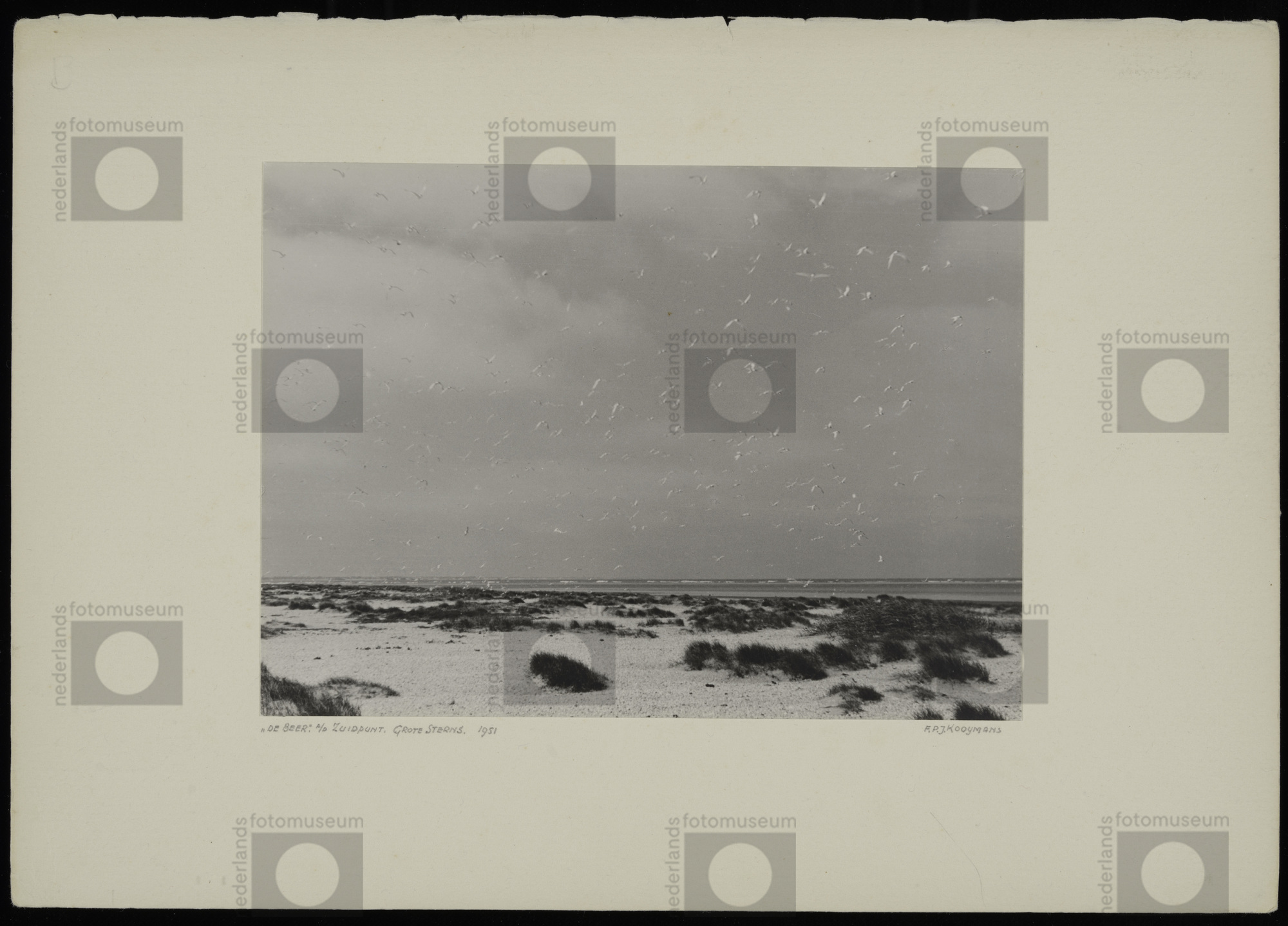 Zwerm Grote sterns boven de broedkolonie op de zuidp...