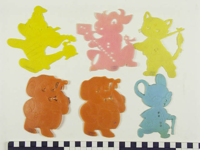 Zes sjablonen in de vorm van dieren aap, koe, kat, o...