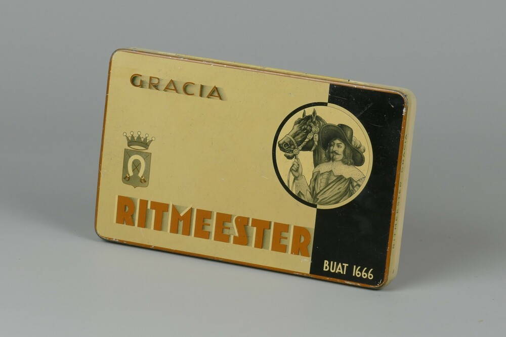 Sigarenblik met opdruk van het merk Ritmeester.