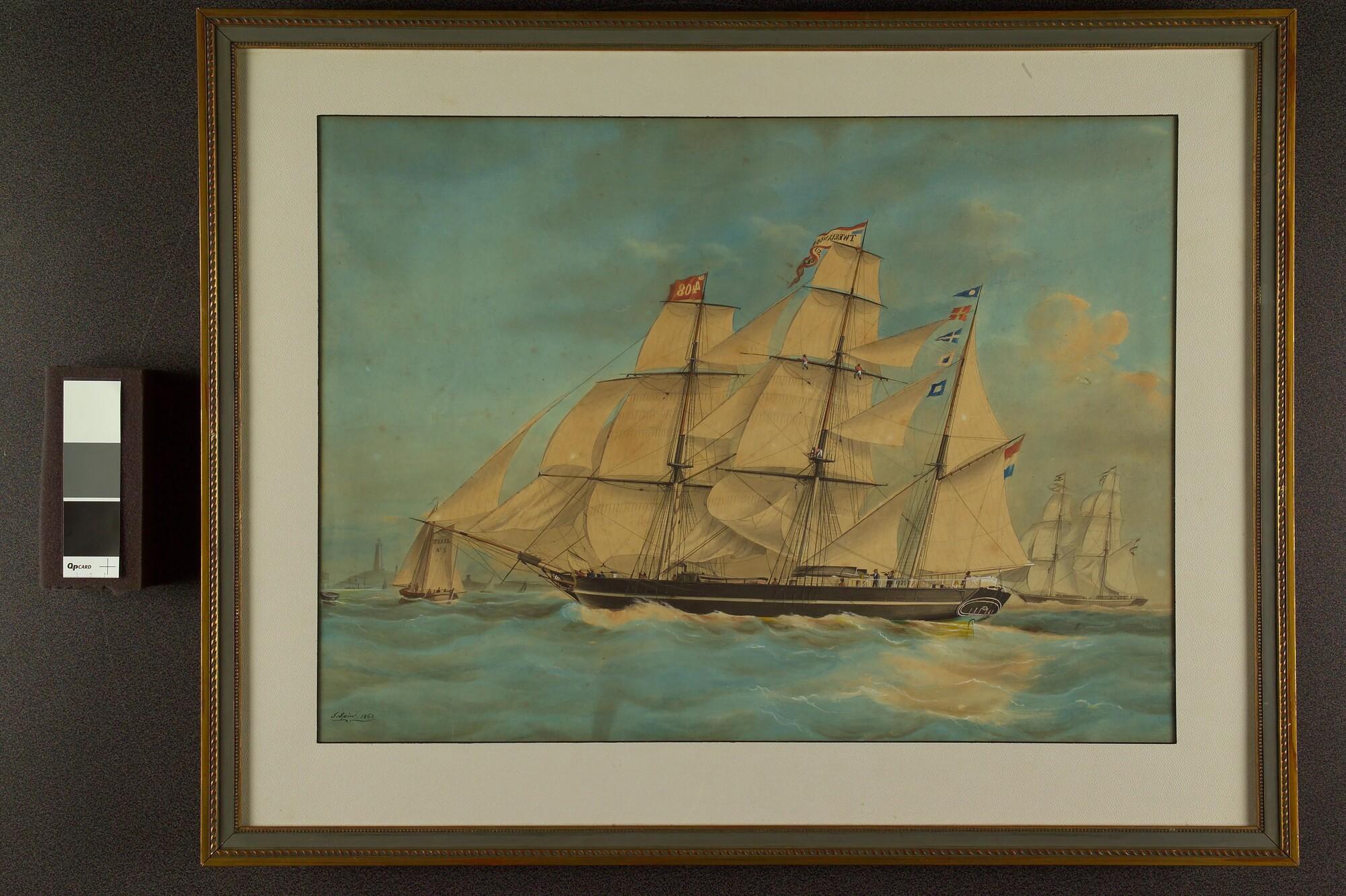 Het fregatschip Bato uit Dordrecht ter hoogte van Texel
