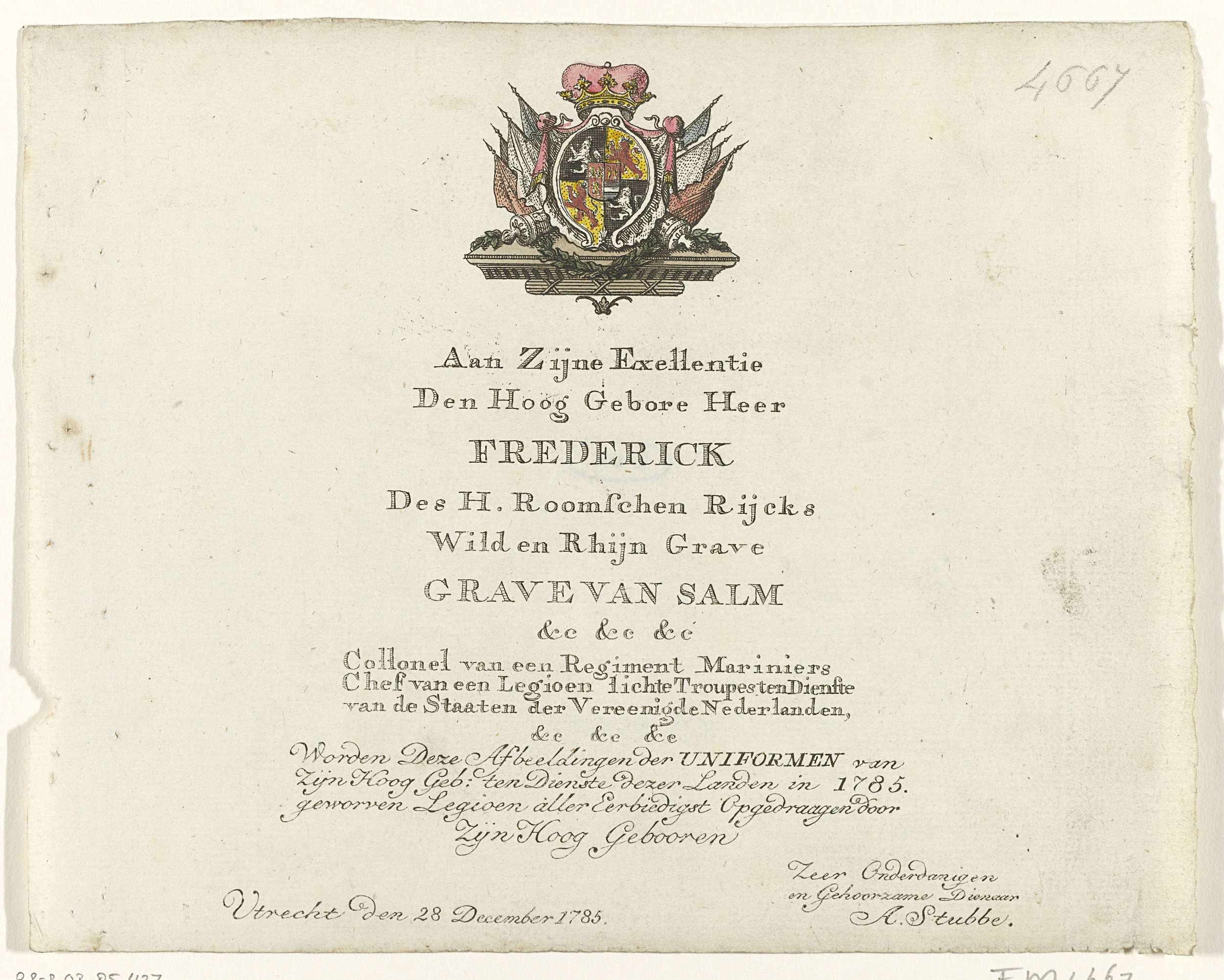 Opdracht bij de prentserie van uniformen van het Leg...