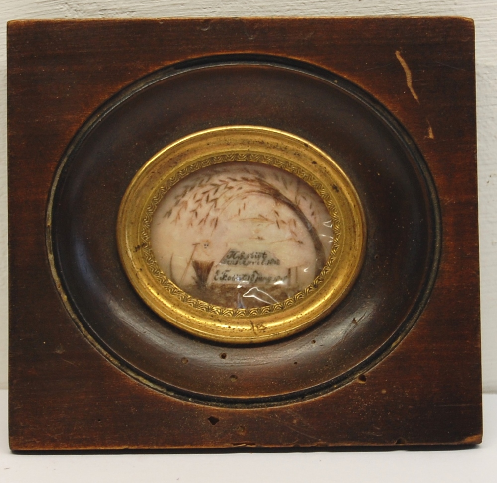 medaillon van koper in mahoniehouten lijst met verdi...