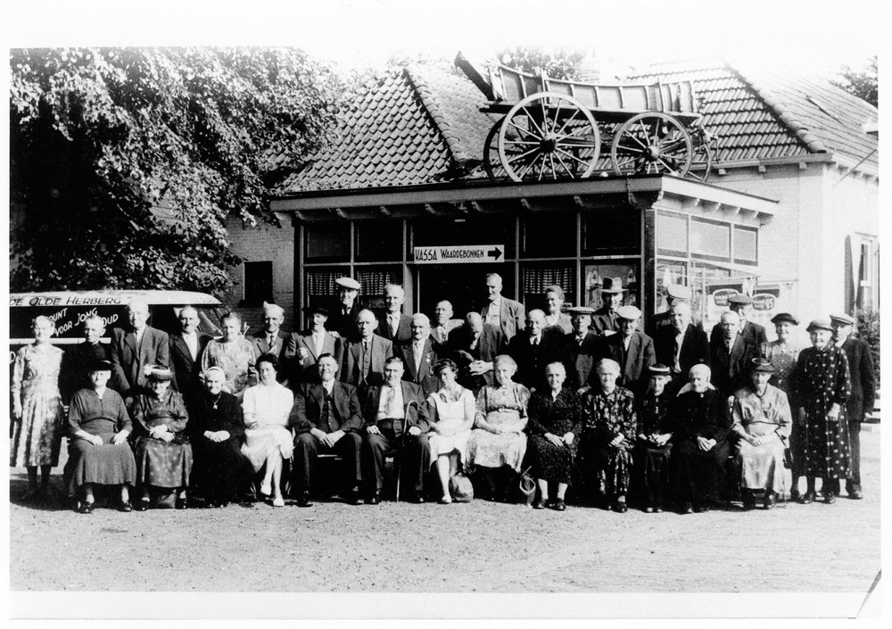 Zwart-wit foto van het koffieconcert van Herwaerdt i...