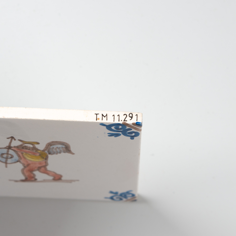 Tegel van keramiek met tinglazuur, voorstellende: ma...