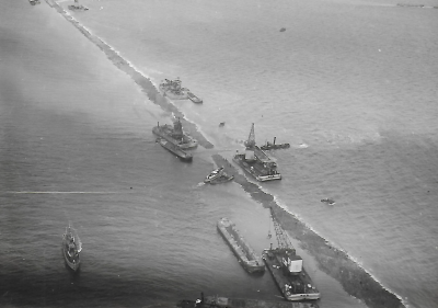 Dichten van een sluitgat van de Afsluitdijk. Vermoed...