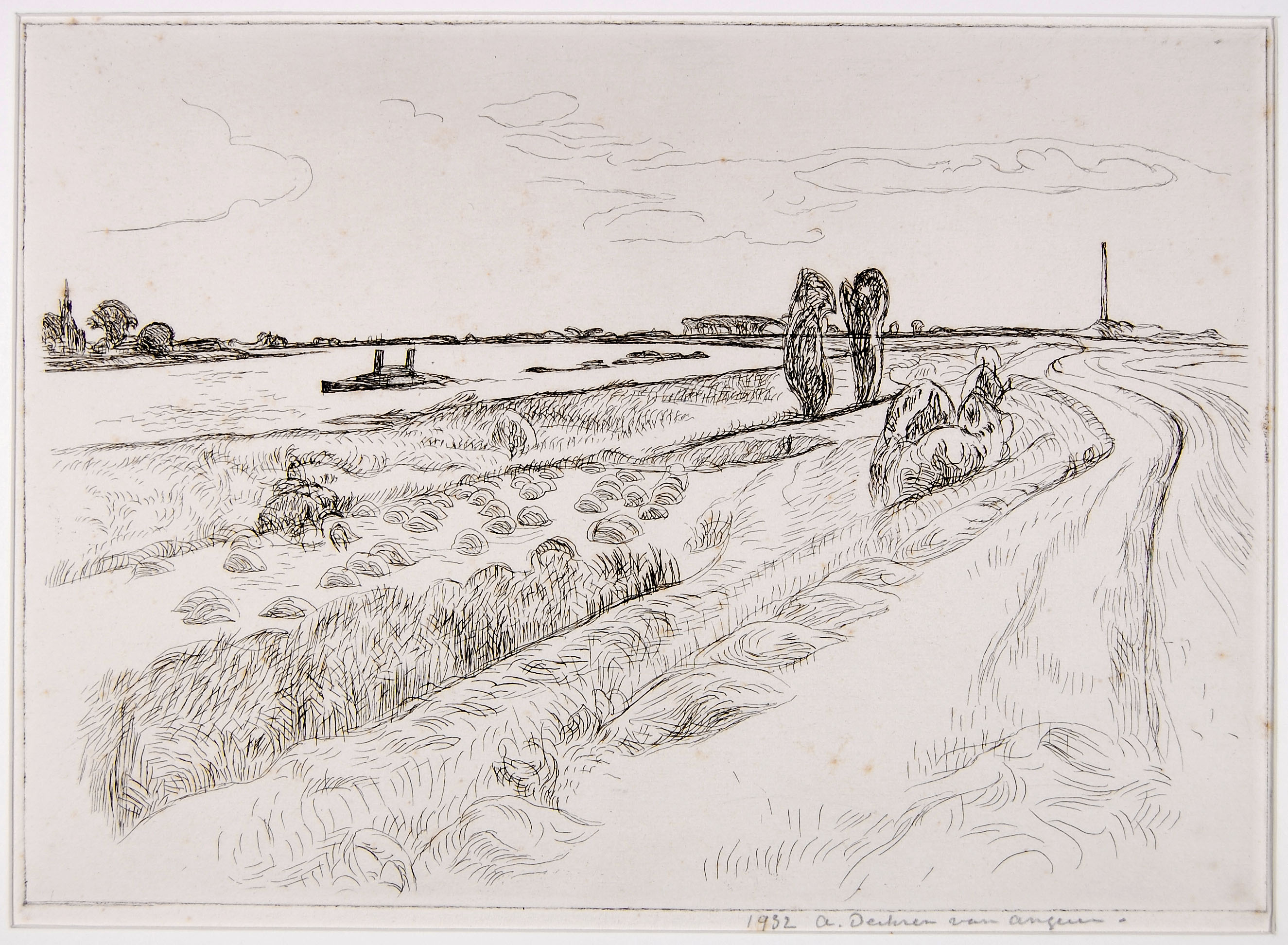 Riviergezicht met uiterwaard en steenfabrieken