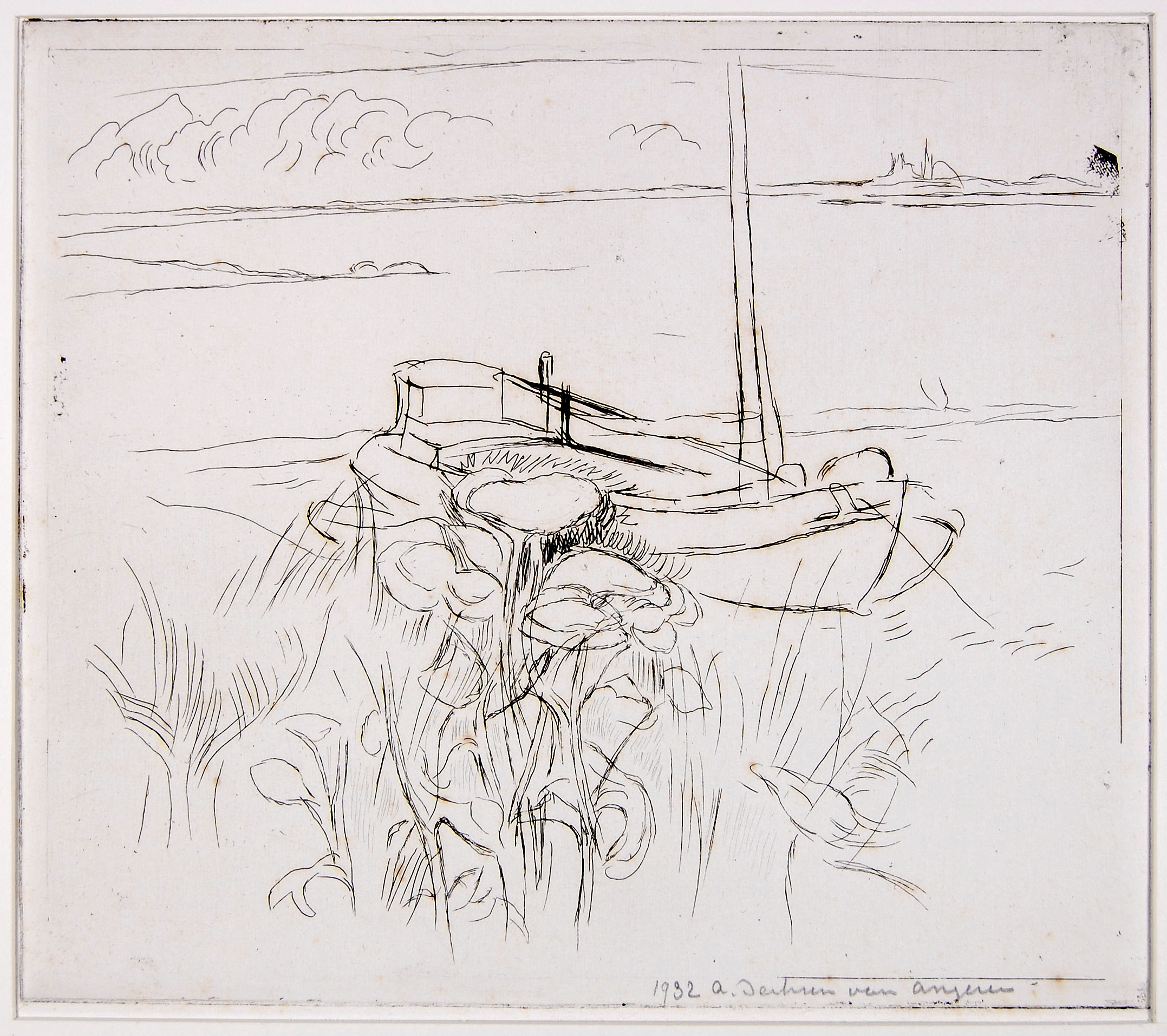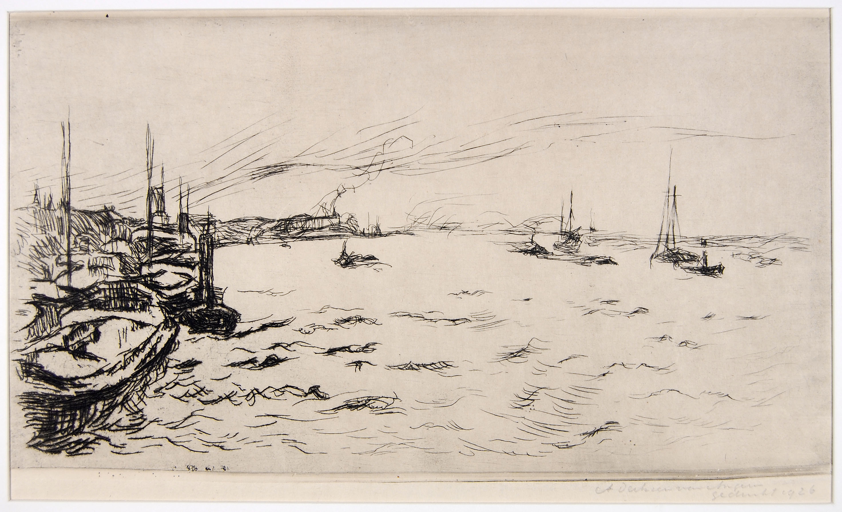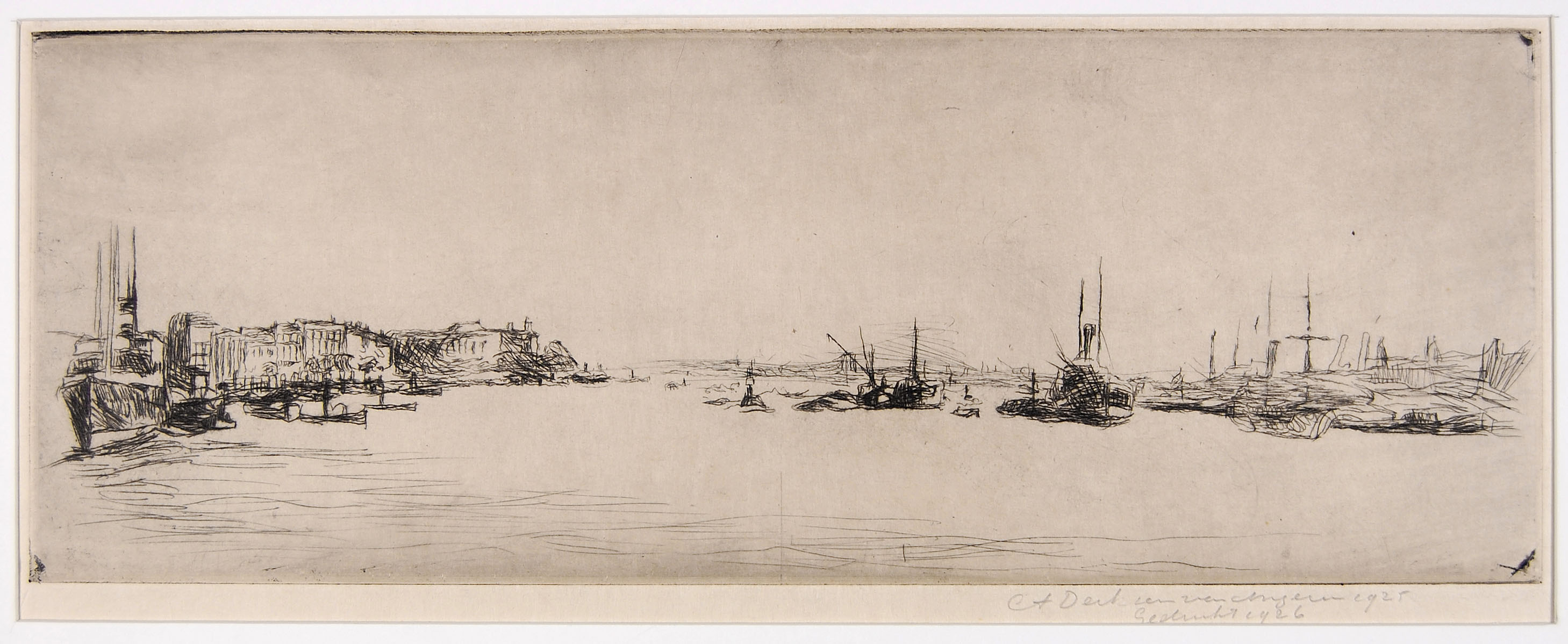 Riviergezicht met links en rechts boten, Rotterdam