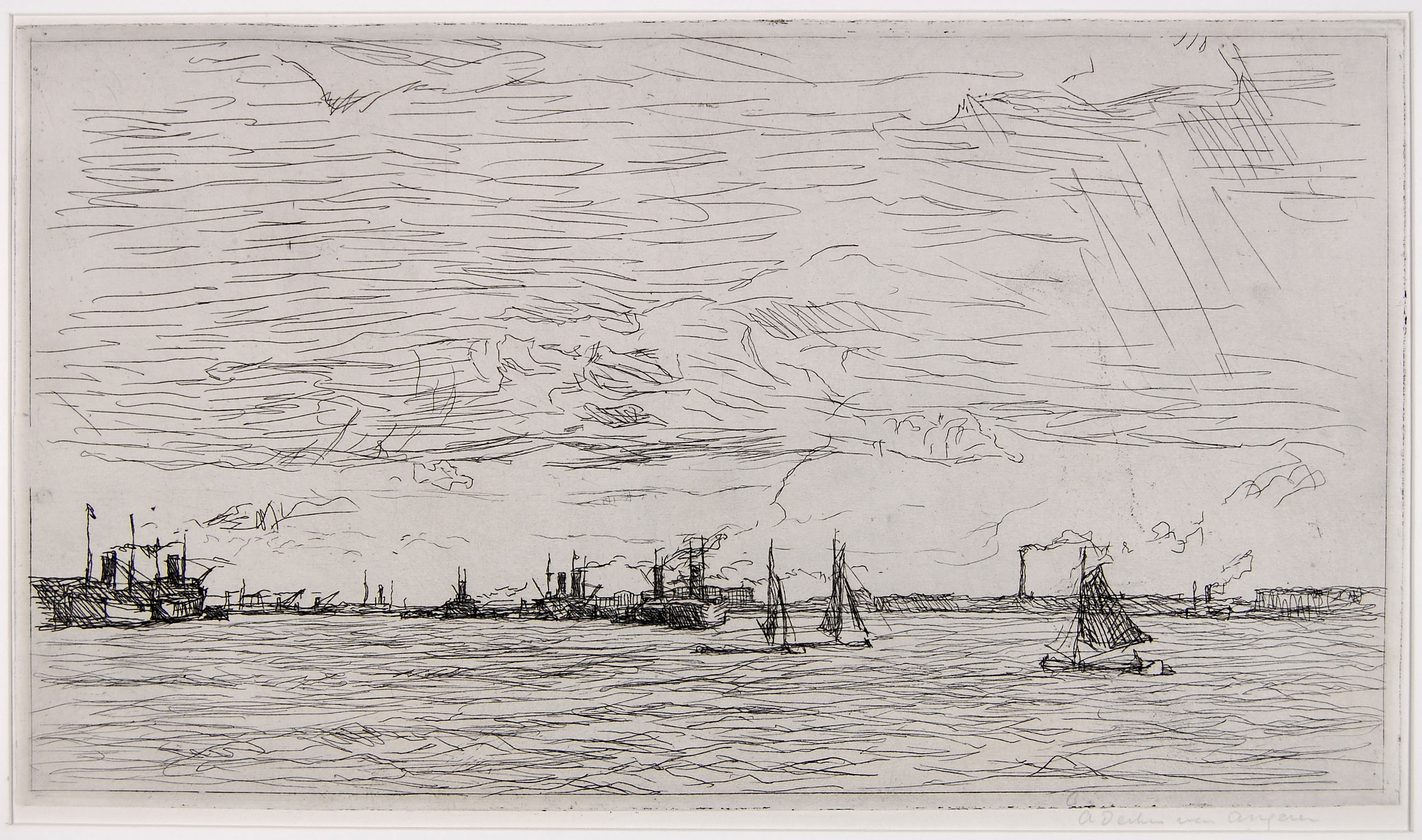 Riviergezicht met schepen (Nieuwe Maas, Rotterdam)