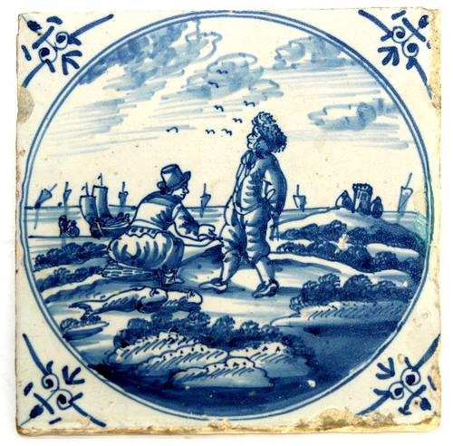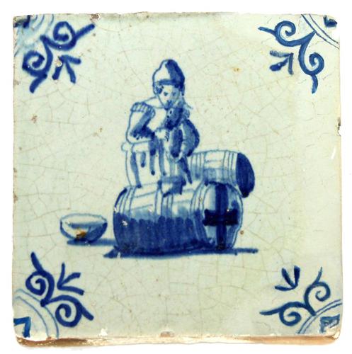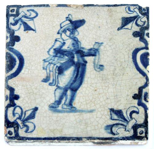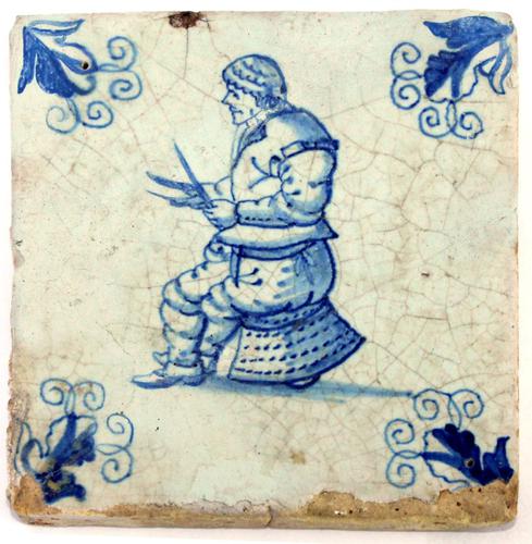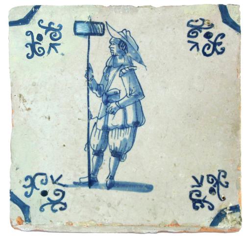 Ambacht tegel. Man met cape en grote schalen