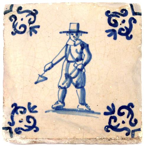 Ambacht tegel Figuur, man met lamp,