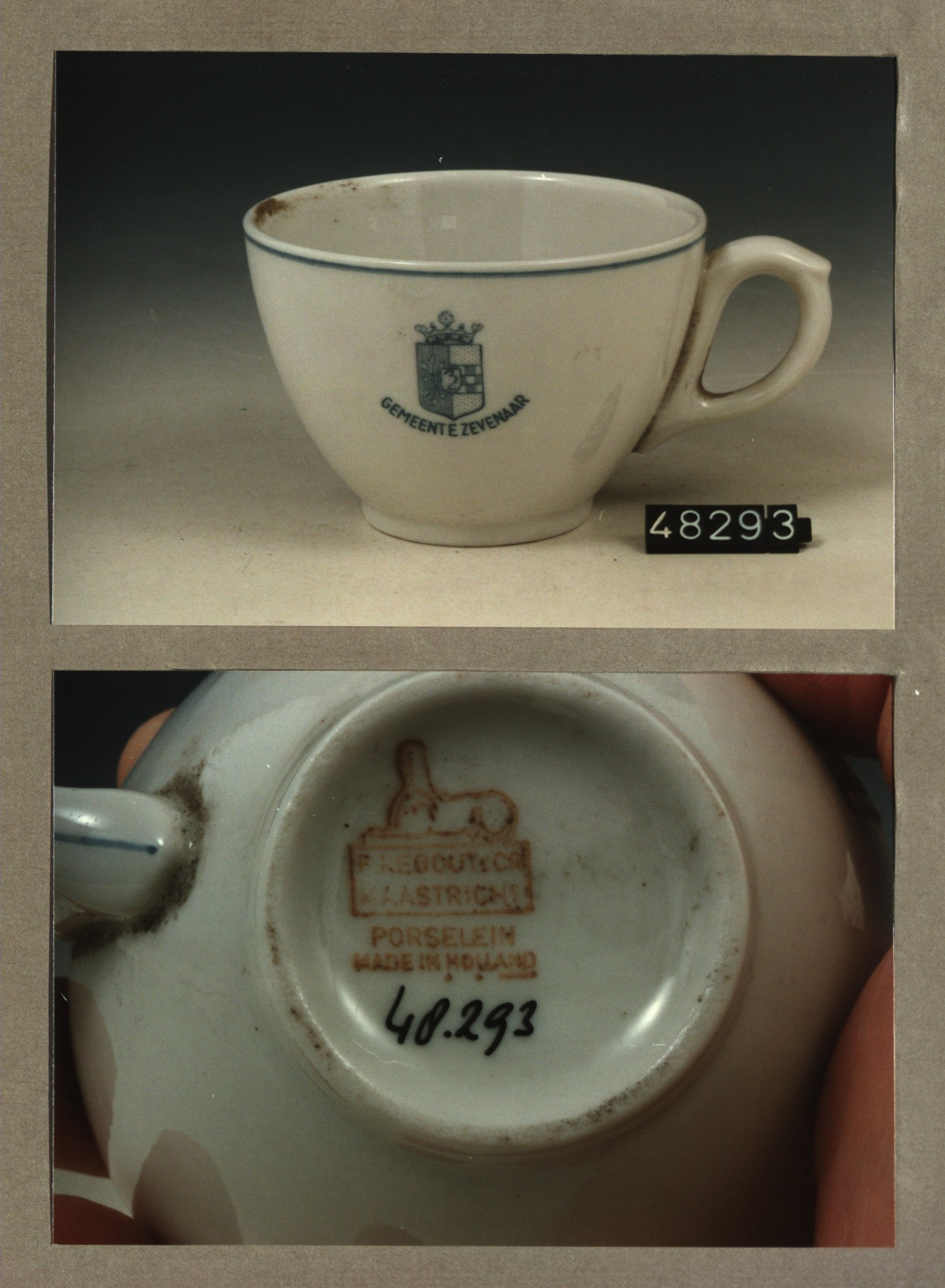Kop met opschrift, model F met decor Gemeente Zevenaar