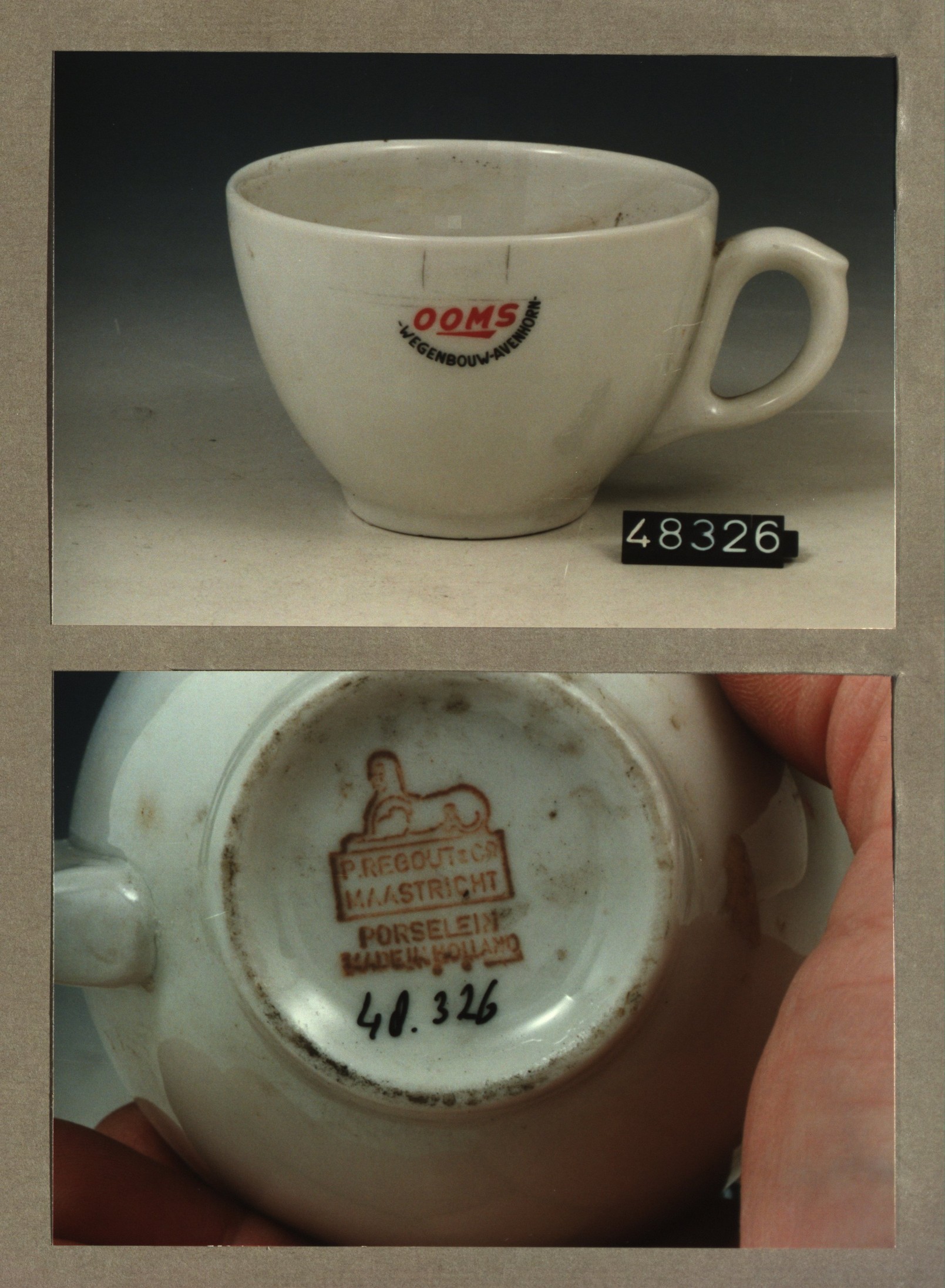 Kop met opschrift, model SMN met decor Ooms wegenbou...