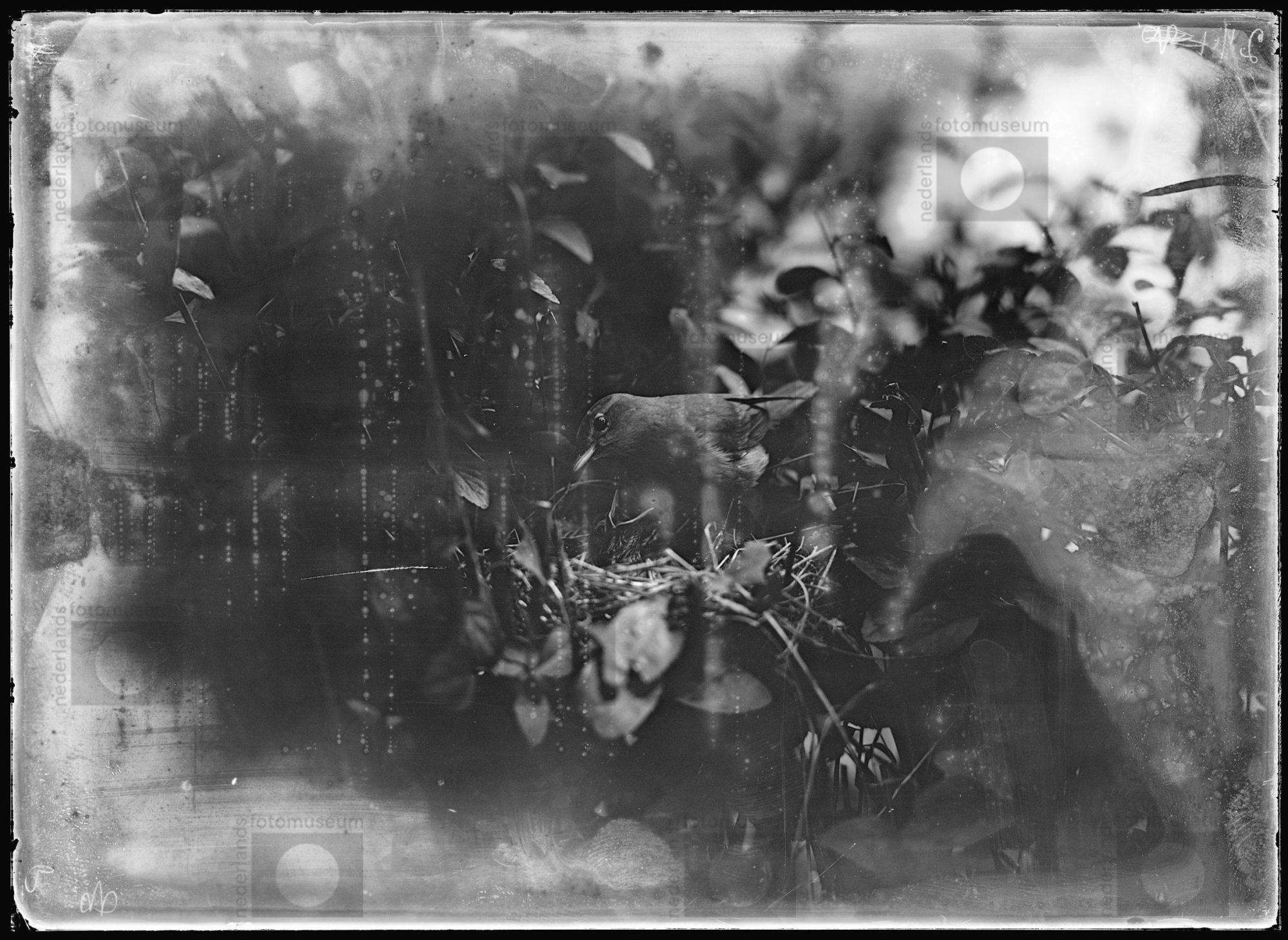 Broedende Nachtegaal, Santpoort (1904). Uitvergrotin...