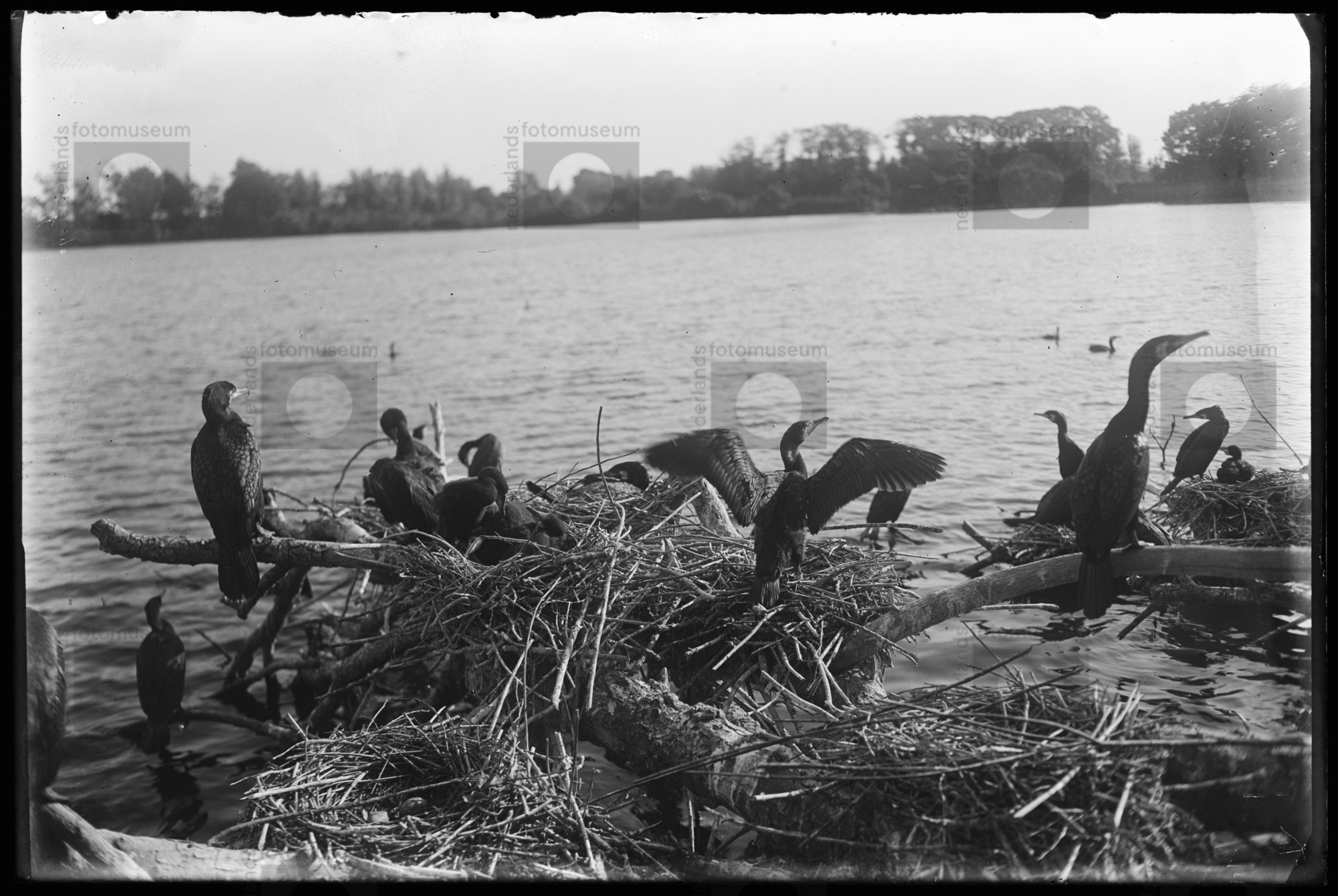 Aalscholvers bij/op hun nest, Lekkerkerk (1928)