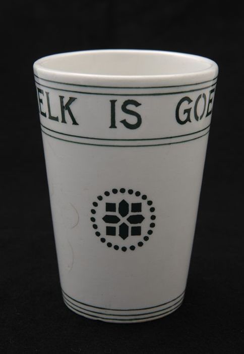 Melkbeker met tekst "MELK IS GOED VOOR ELK"