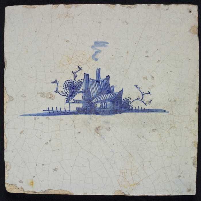 Tafereeltegel, blauw, huizen, geen hoekmotief