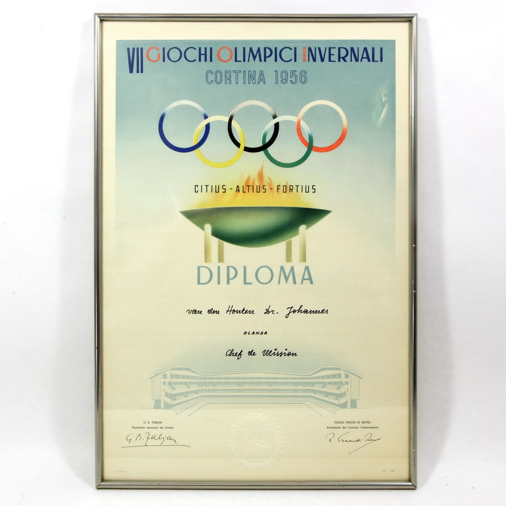 Olympisch diploma Chef de Mission Jan van den Houten...