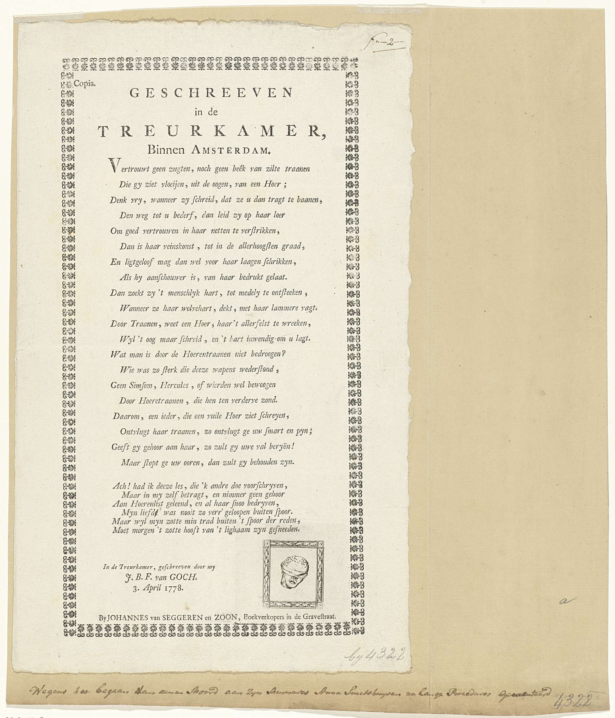 Vers geschreven door J.B.F. van Gogh voor zijn execu...