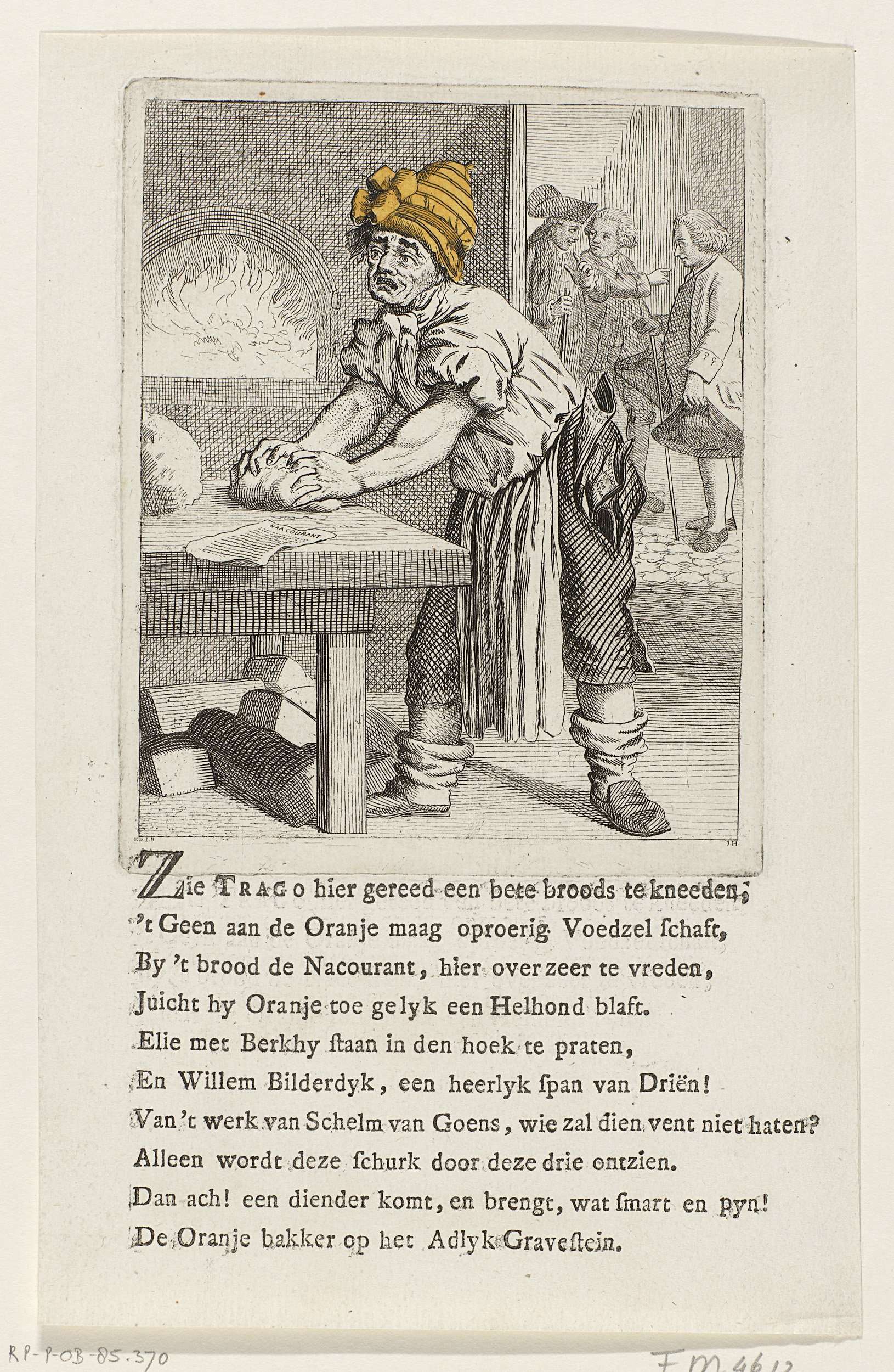 Spotprent op de Leidse bakker Adriaan Trago, 1784