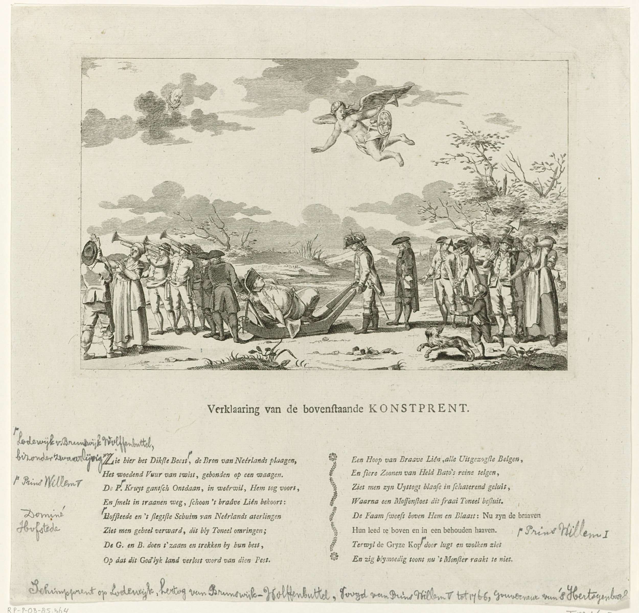 Spotprent met het wegkruien van de hertog van Brunsw...