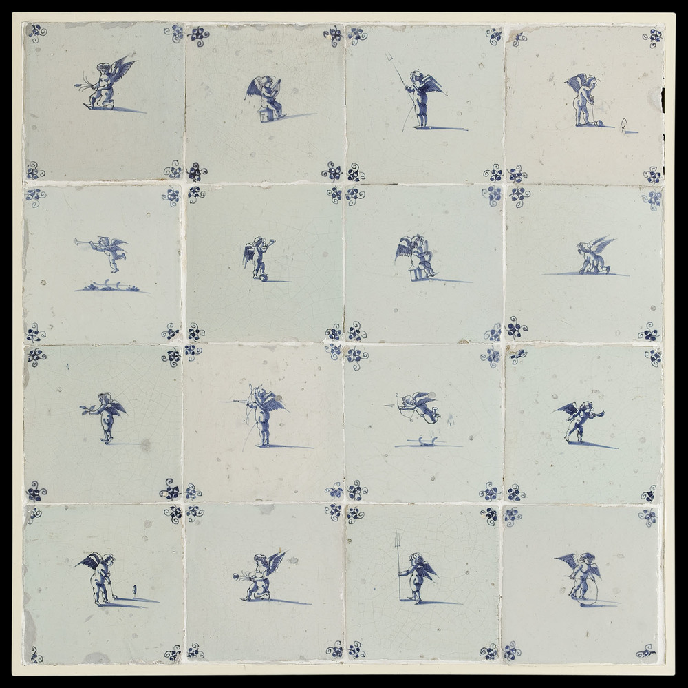 Tegelveld van keramiek, tinglazuur, voorstellende ee...