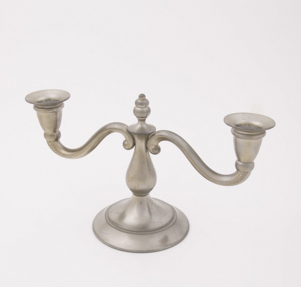 Kandelaar van nieuw tin, vervaardigd door Metaalware...