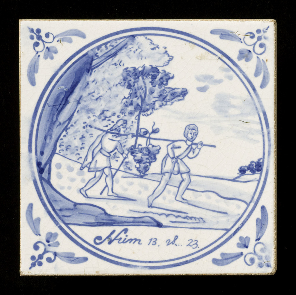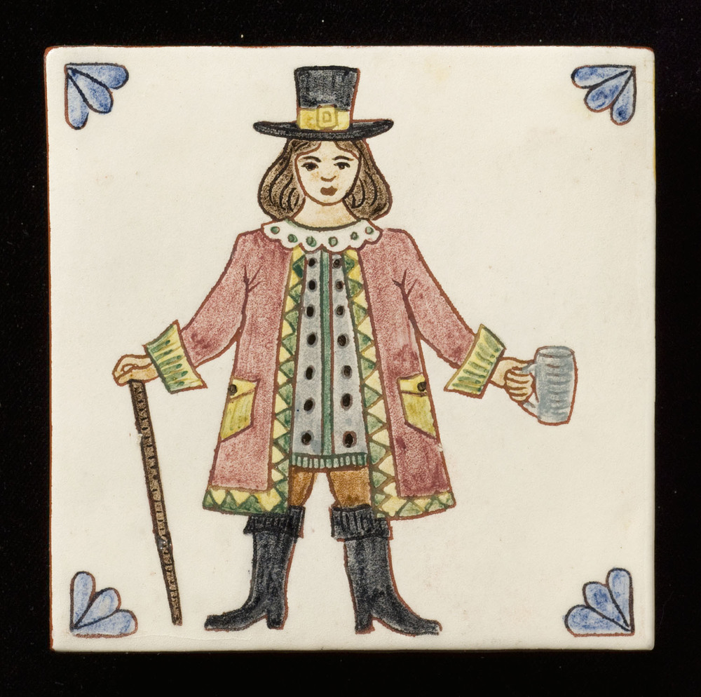 Tegel van keramiek, onderglazuur, voorstellende een ...
